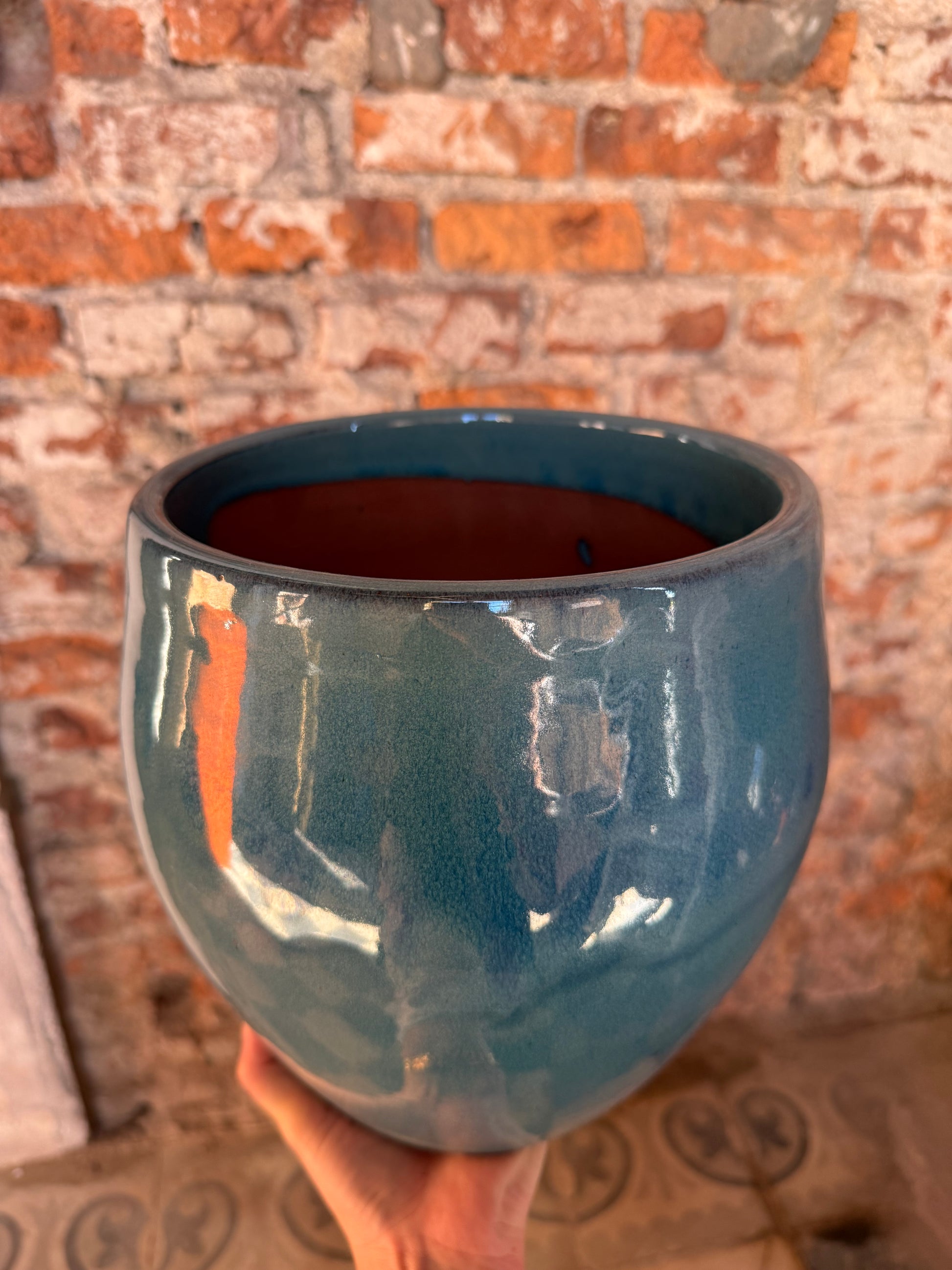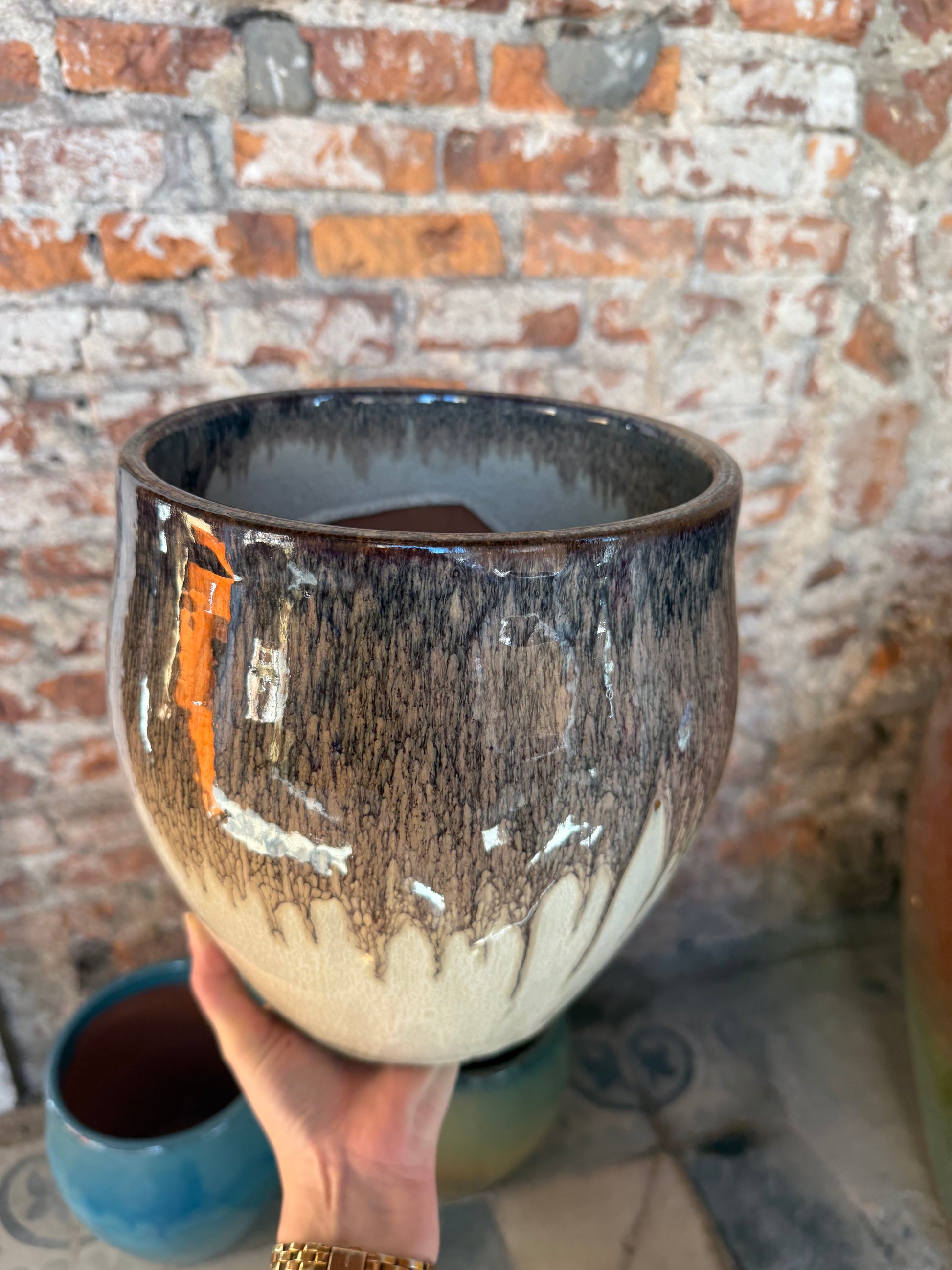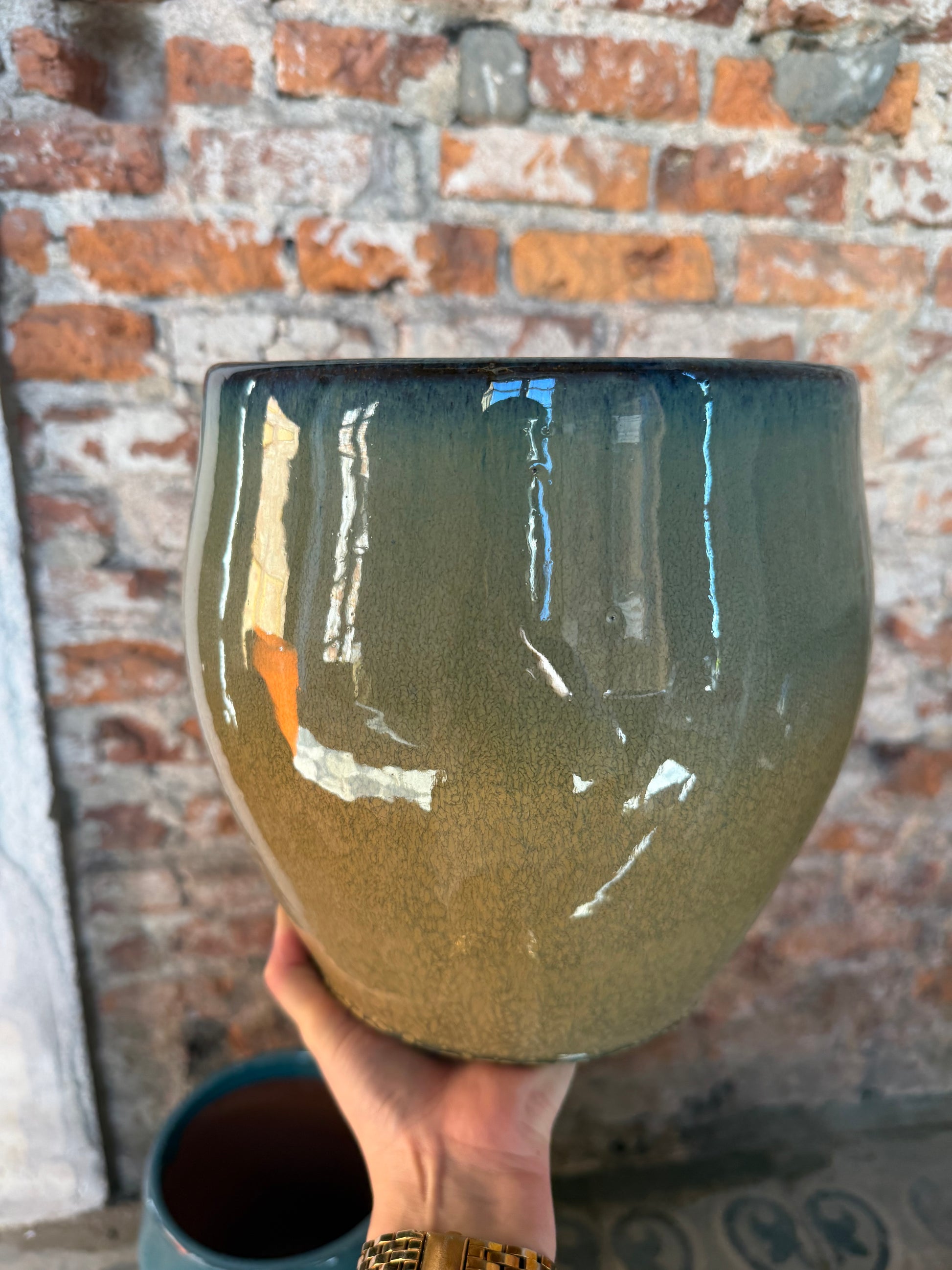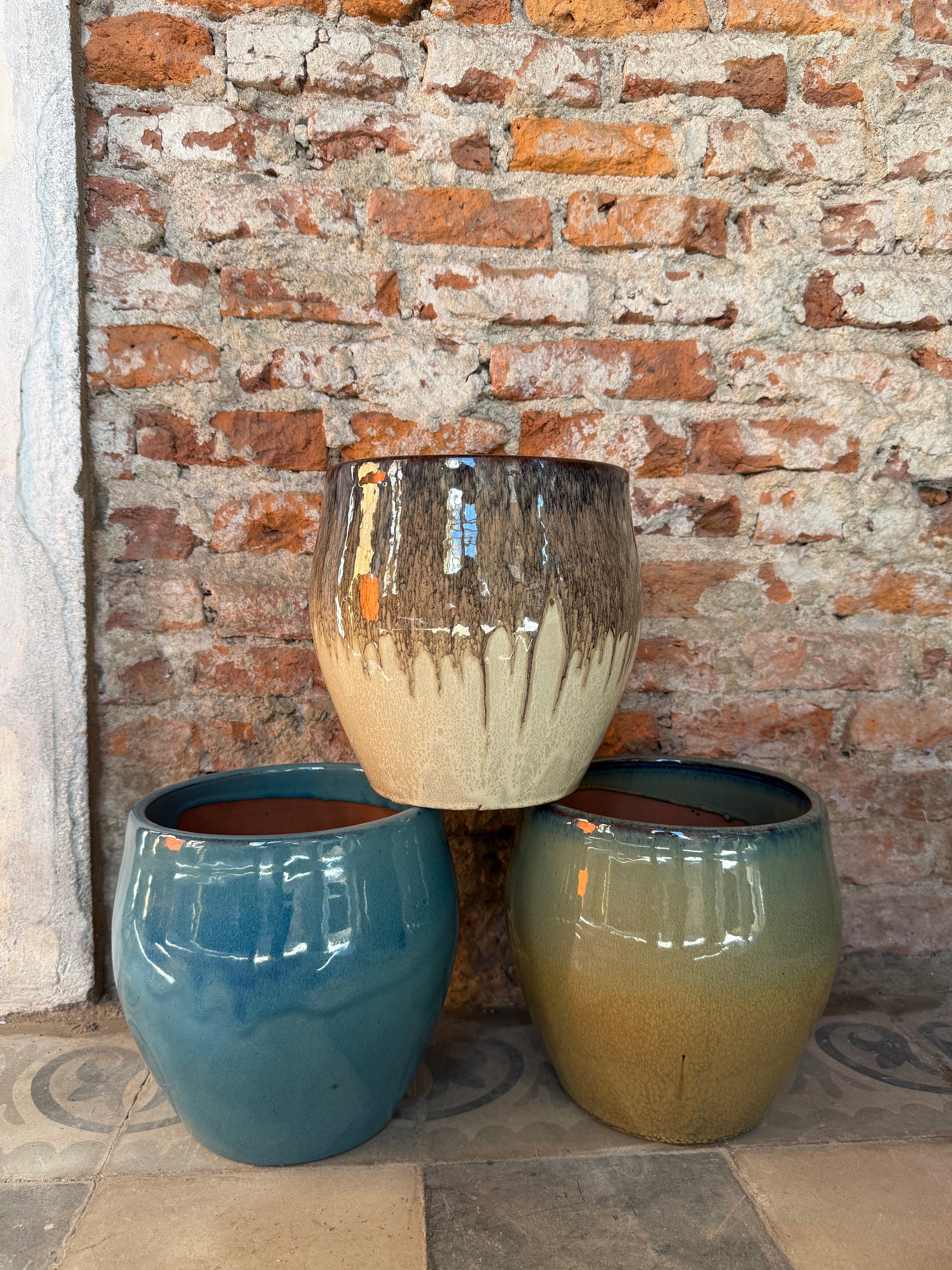 El brillo del esmalte y las leves variaciones de vetas hacen que ninguna sea igual a otra: cada maceta es irrepetible.