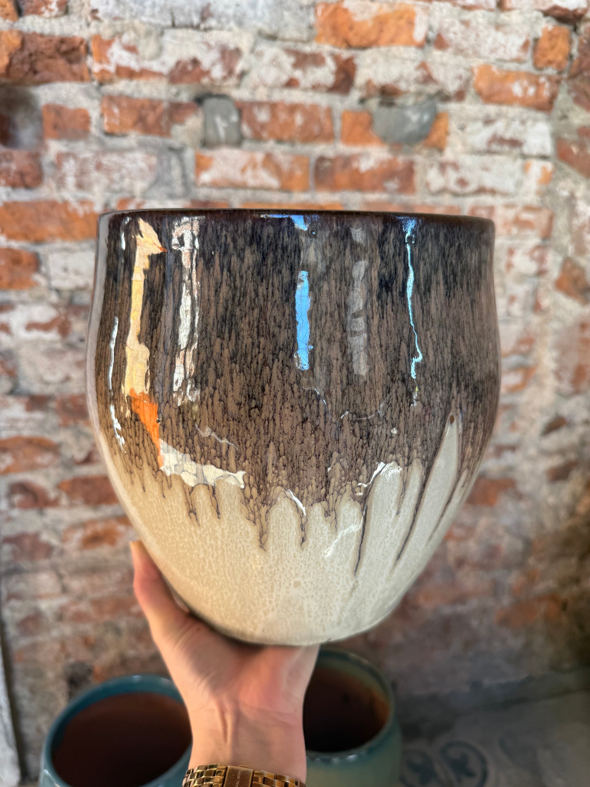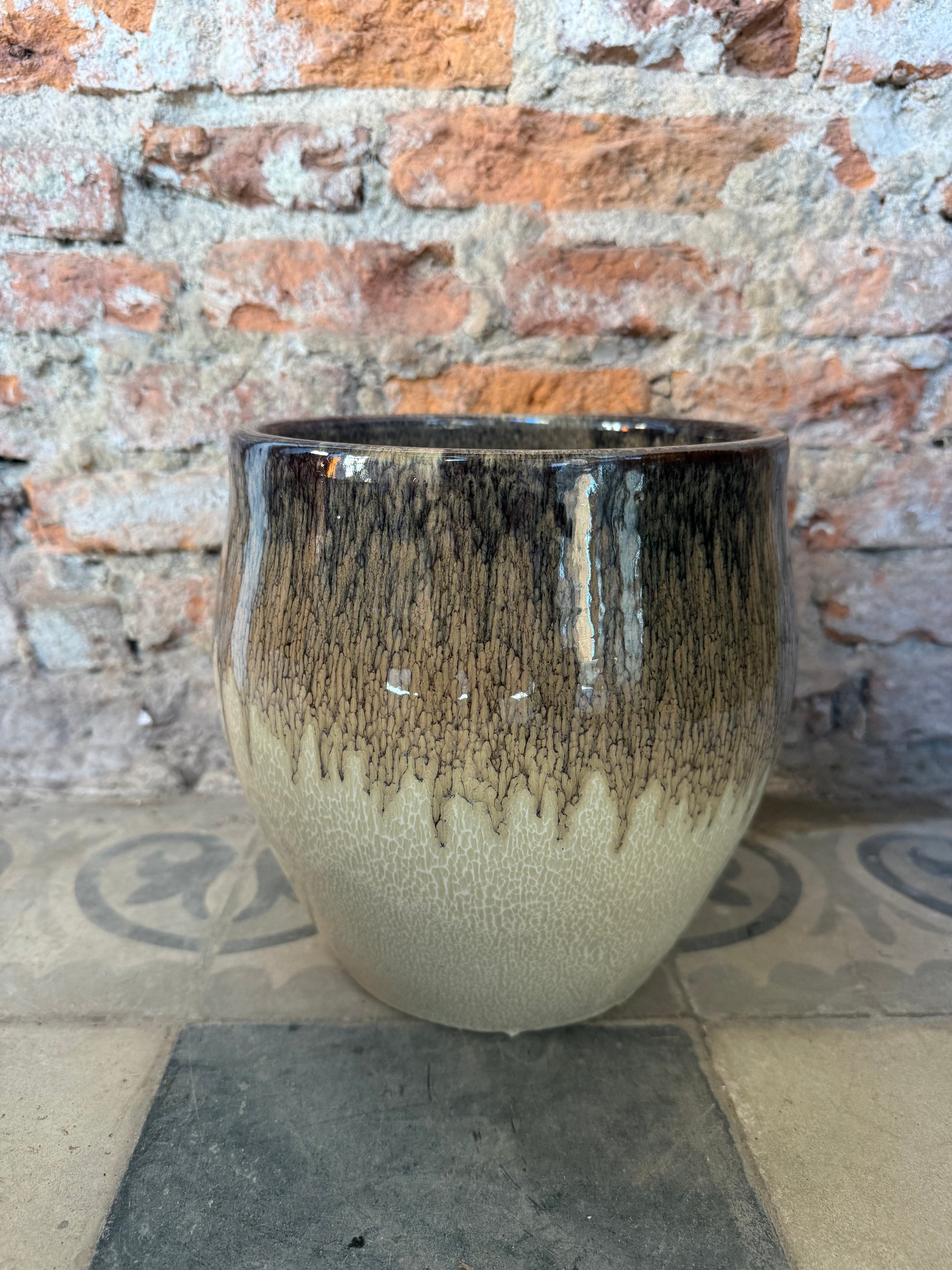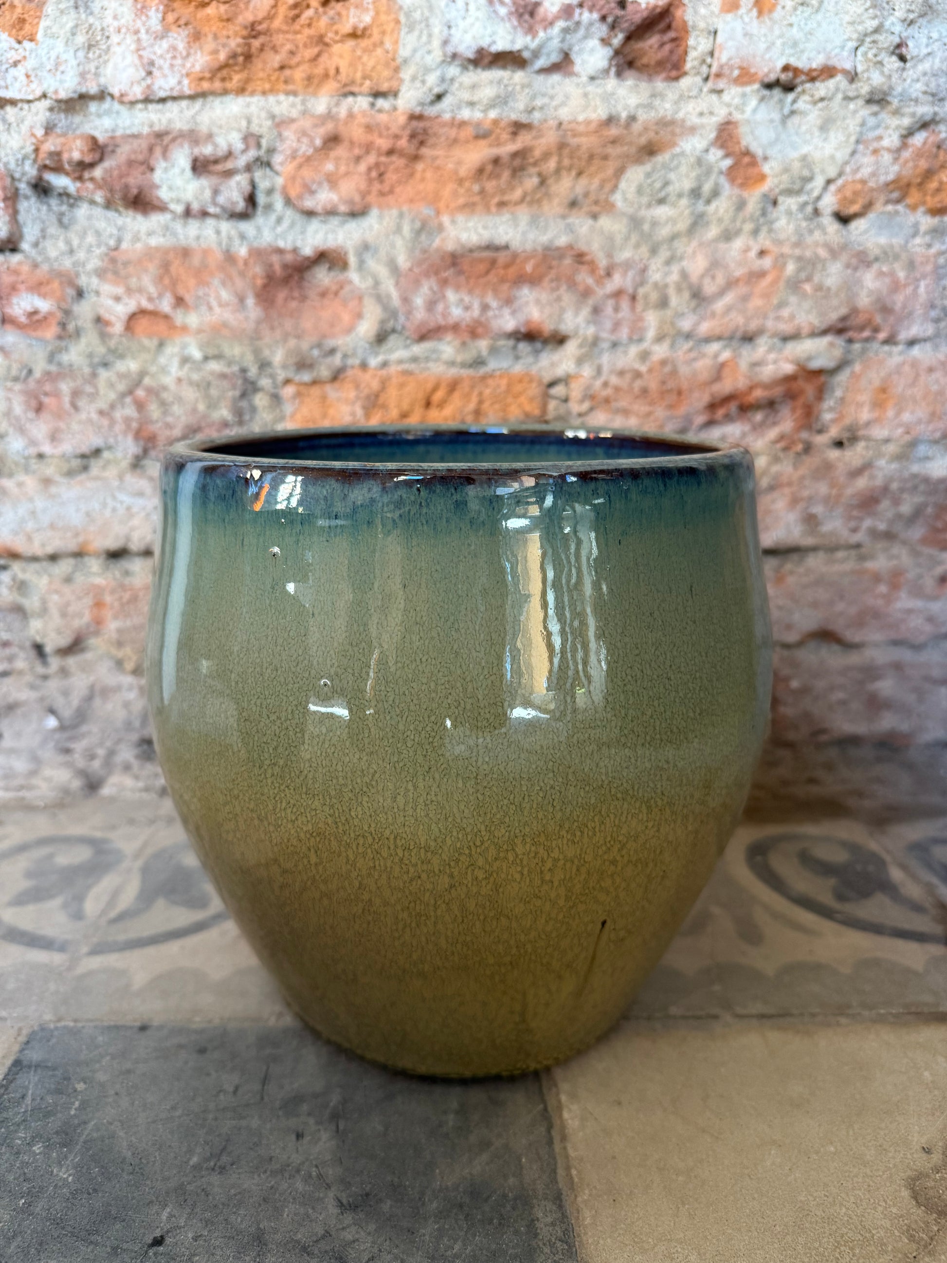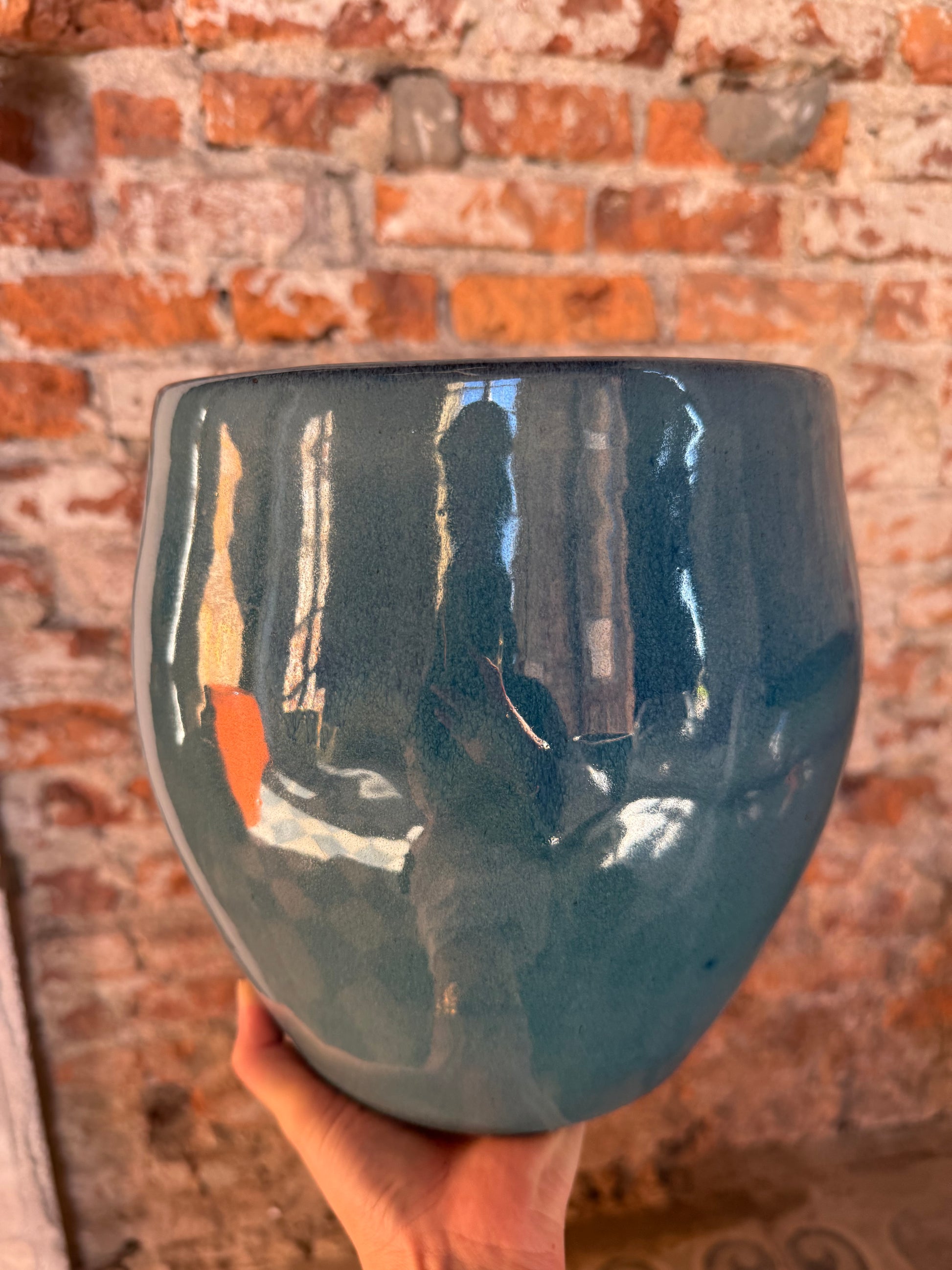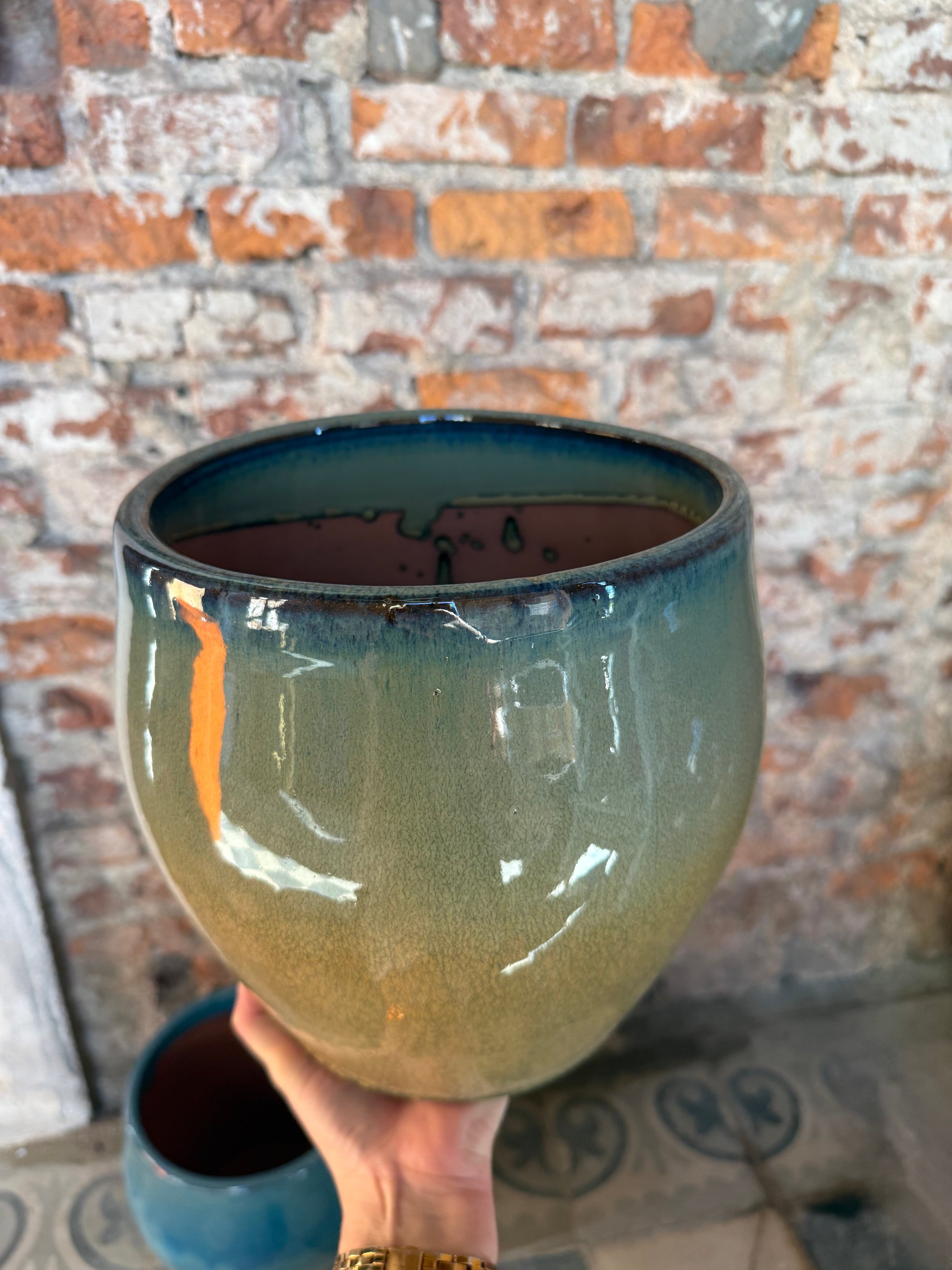 El brillo del esmalte y las leves variaciones de vetas hacen que ninguna sea igual a otra: cada maceta es irrepetible.