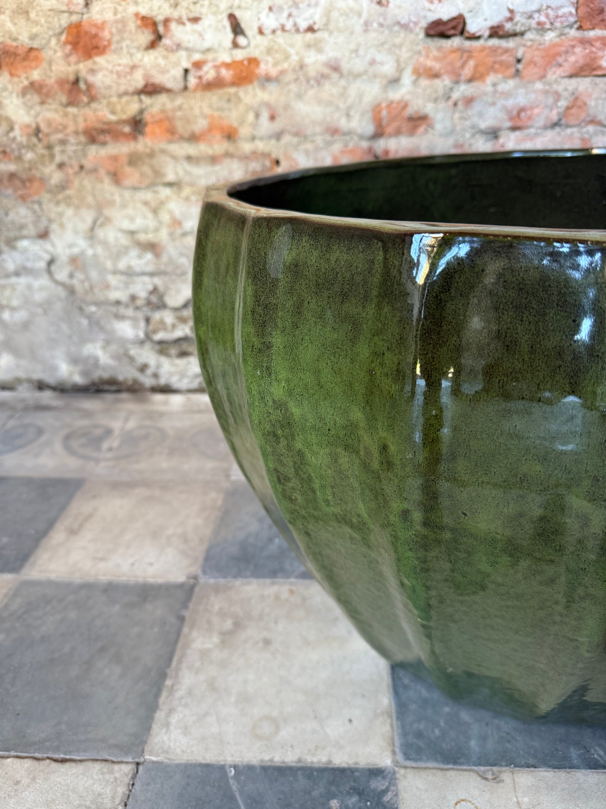Altamira Verde es una maceta imponente y elegante, diseñada para transformar cualquier espacio en un rincón lleno de vida. Su esmaltado en verde profundo, con matices que varían según la luz, le da un carácter único y sofisticado.