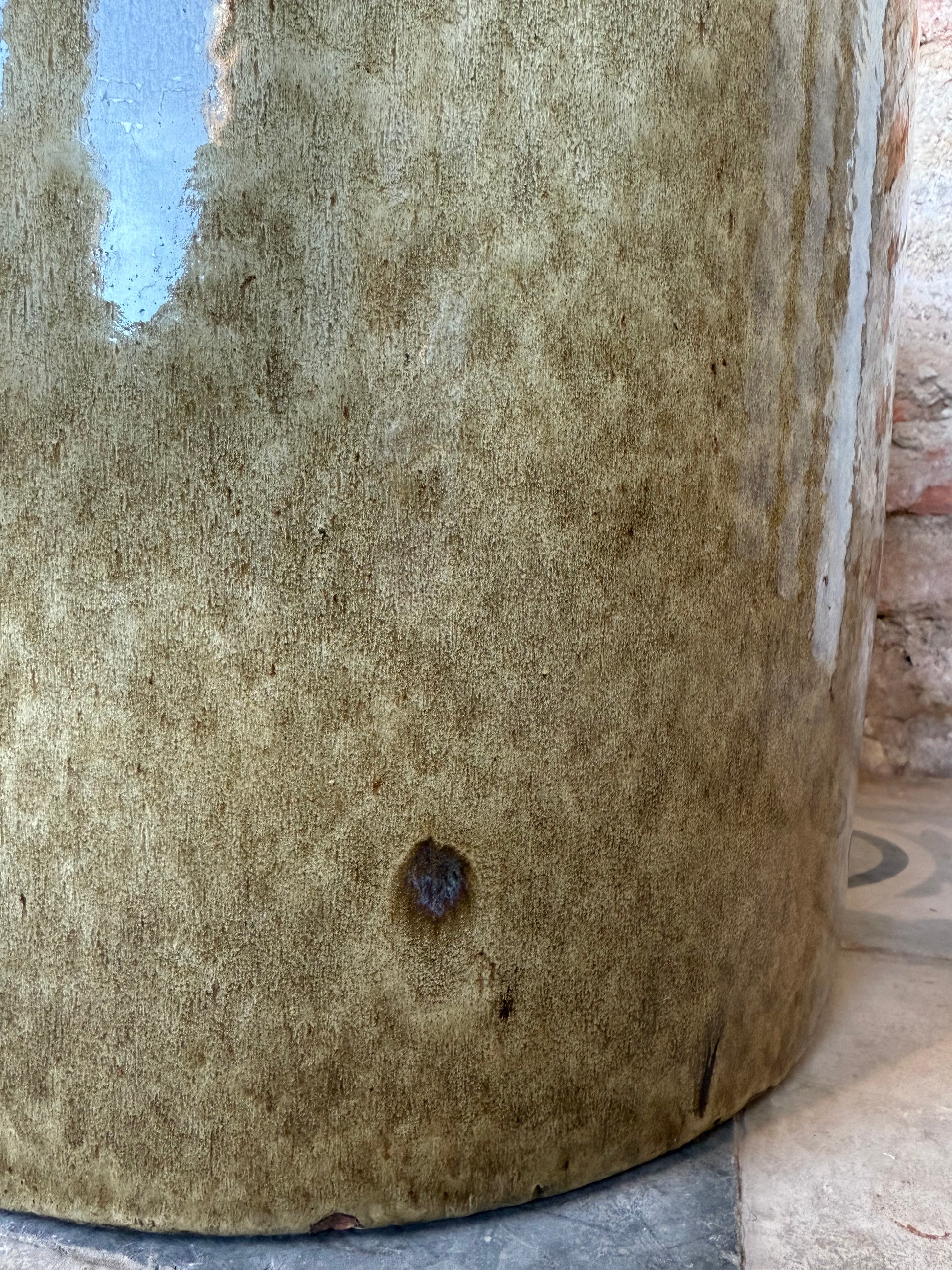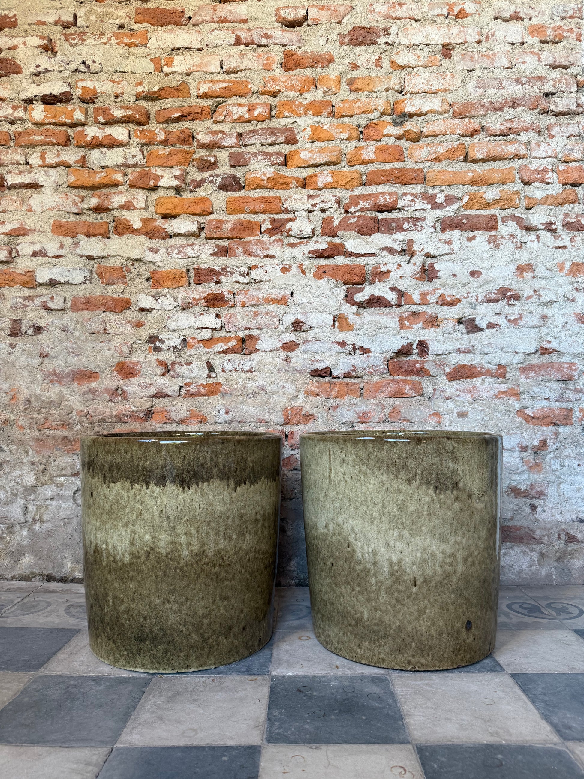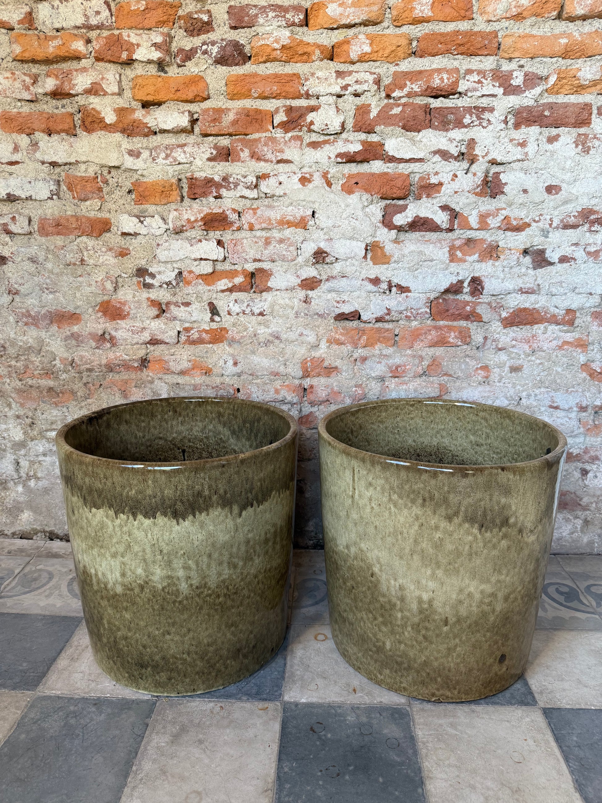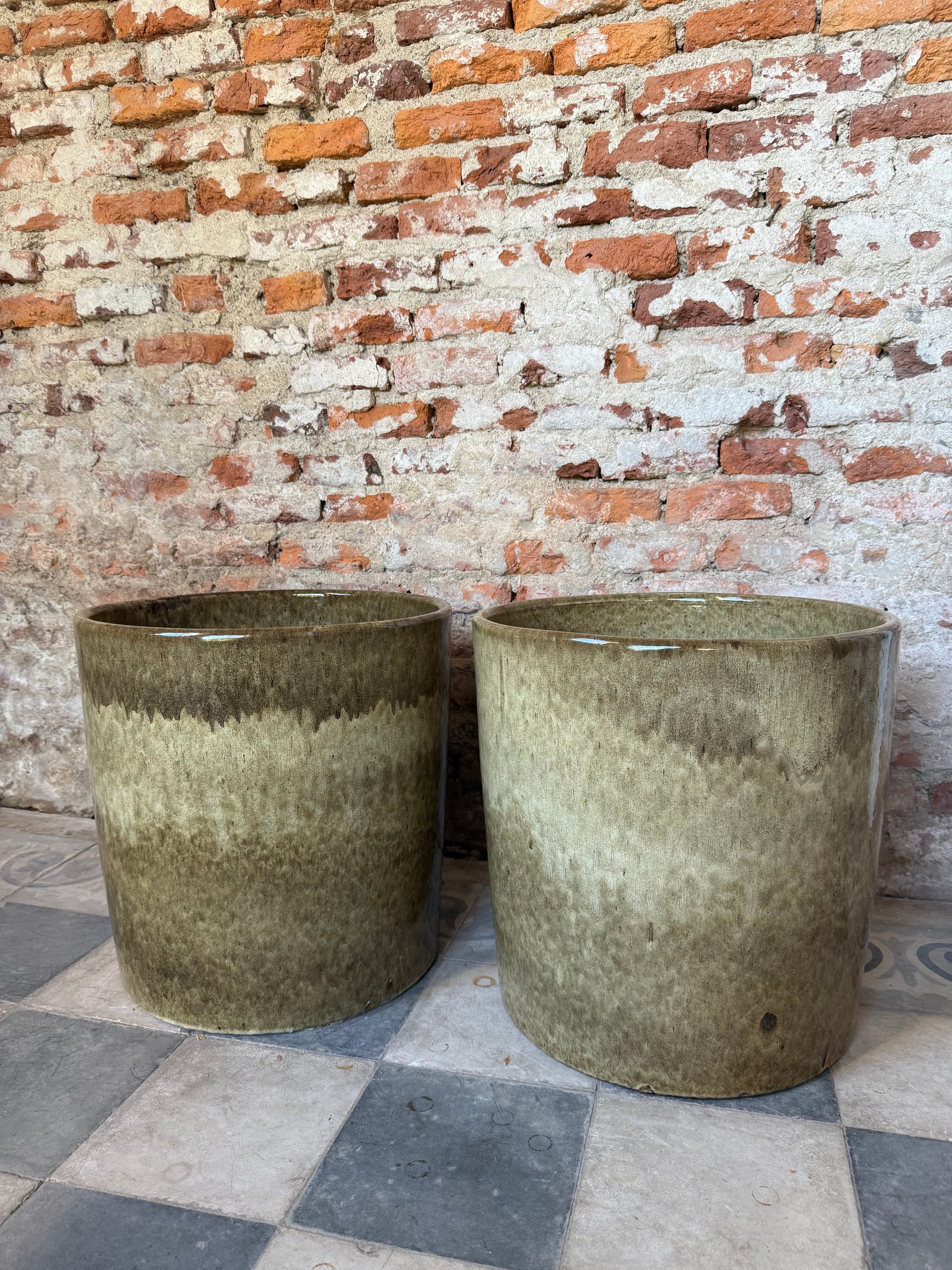 Una maceta de formas simples y esmaltado cálido, con un degradé que va del arena claro a un tostado profundo. ideal para sumar textura y calidez a cualquier espacio, tanto moderno como rústico.