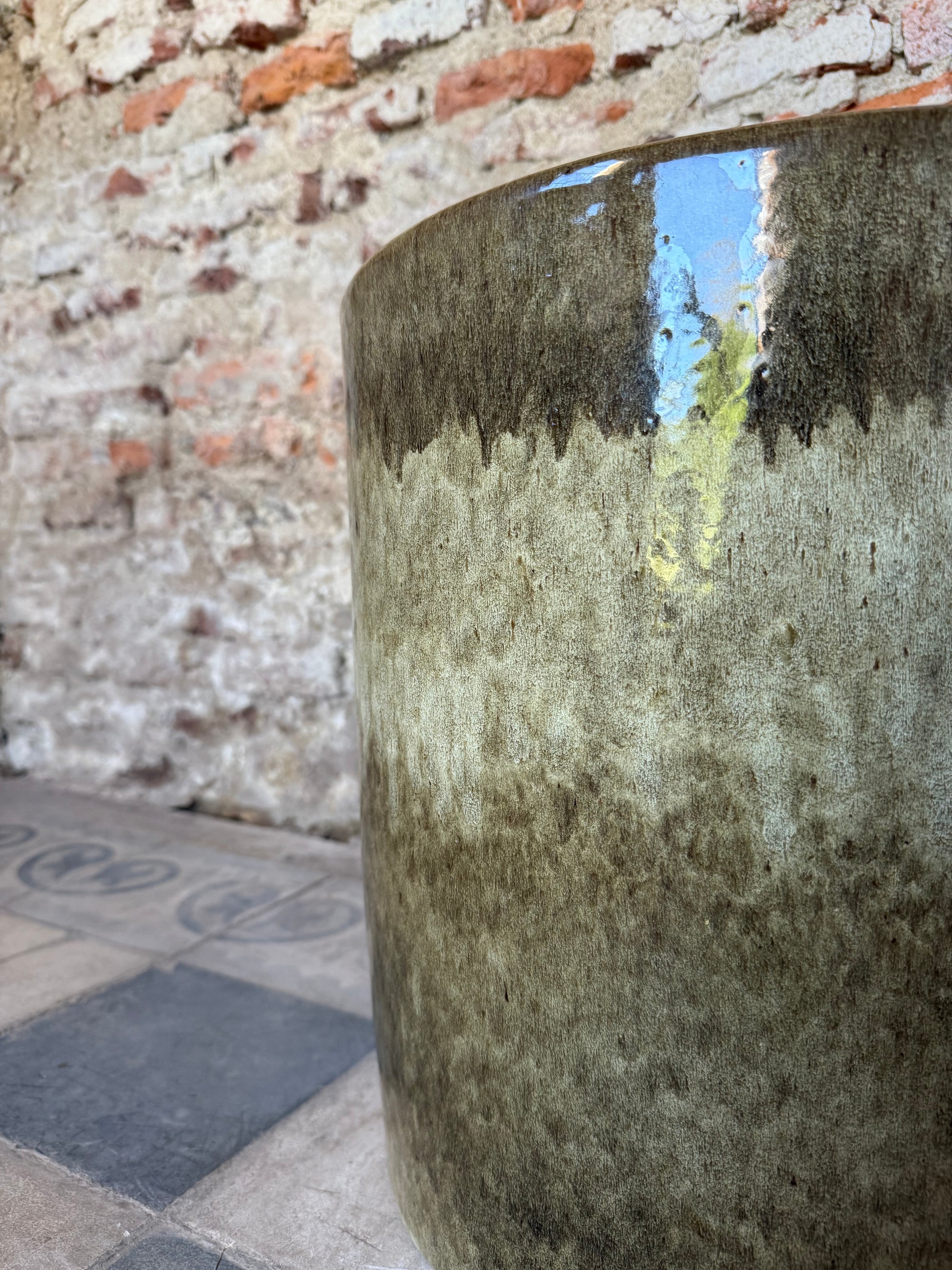 ninguna es igual a otra: cada maceta tiene un degradé y vetas únicas, propias del esmaltado.