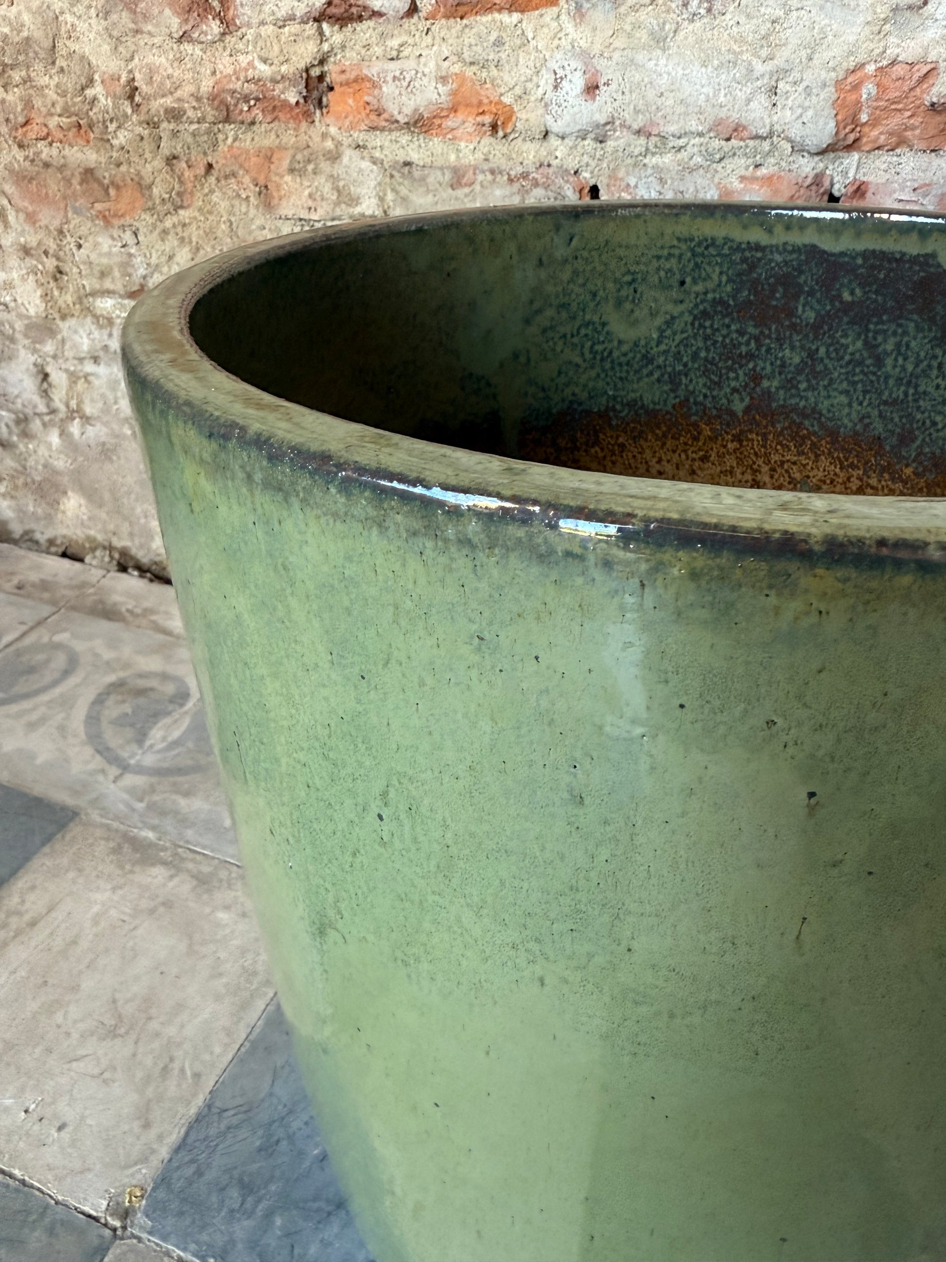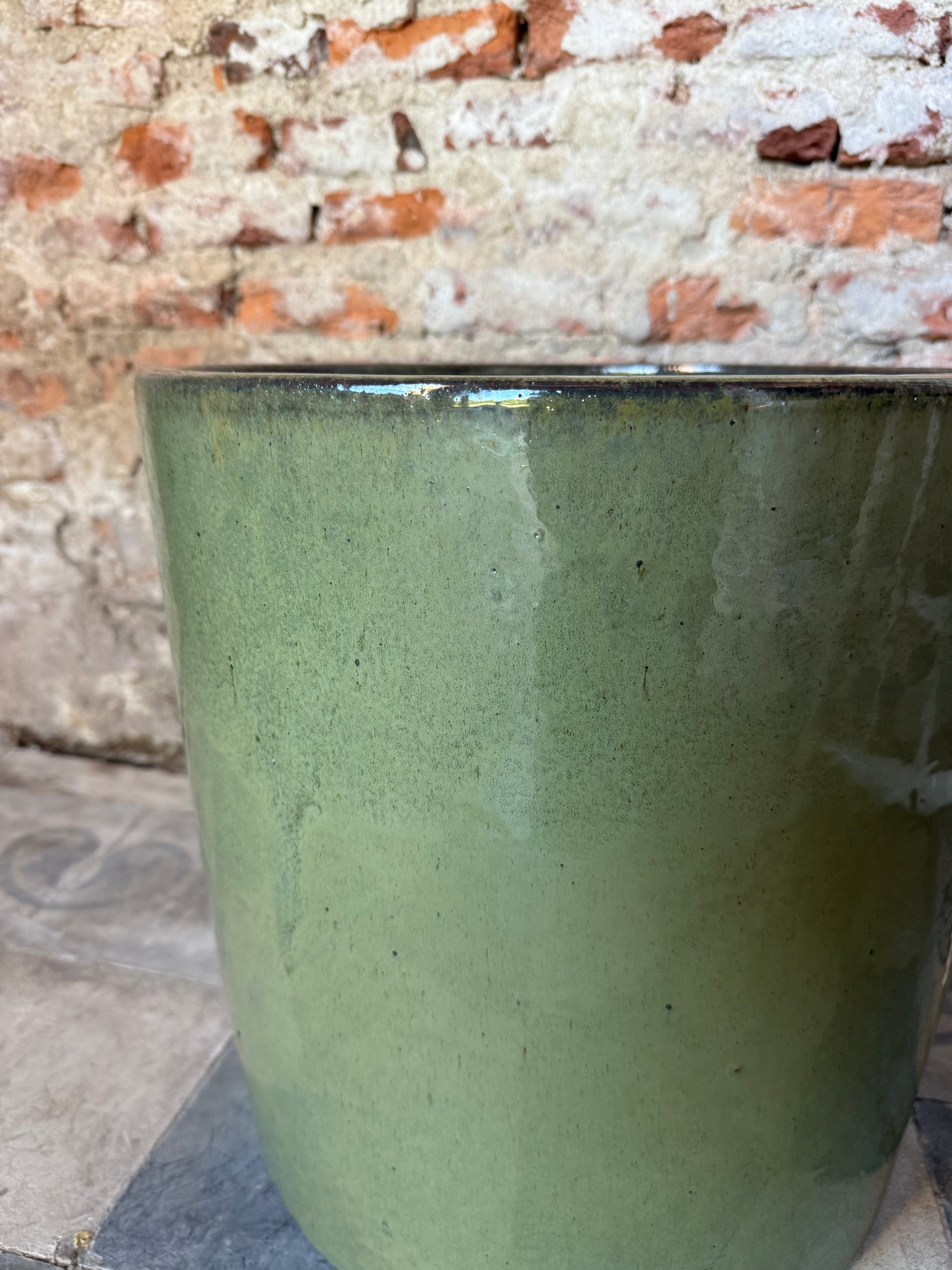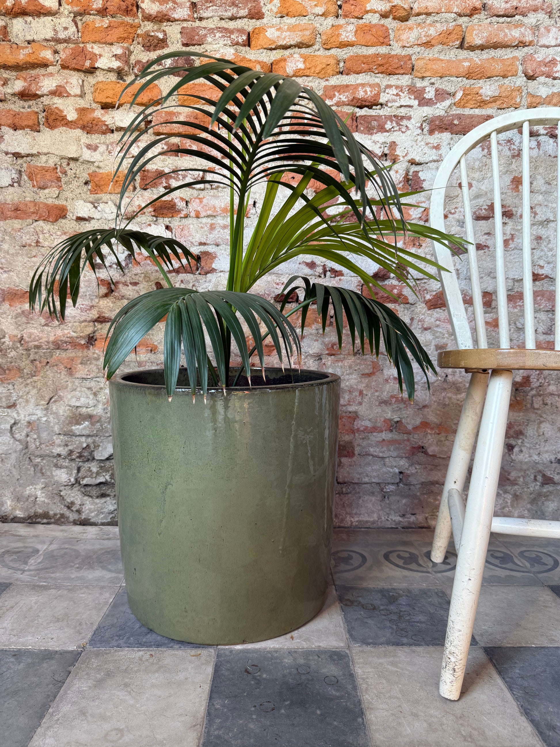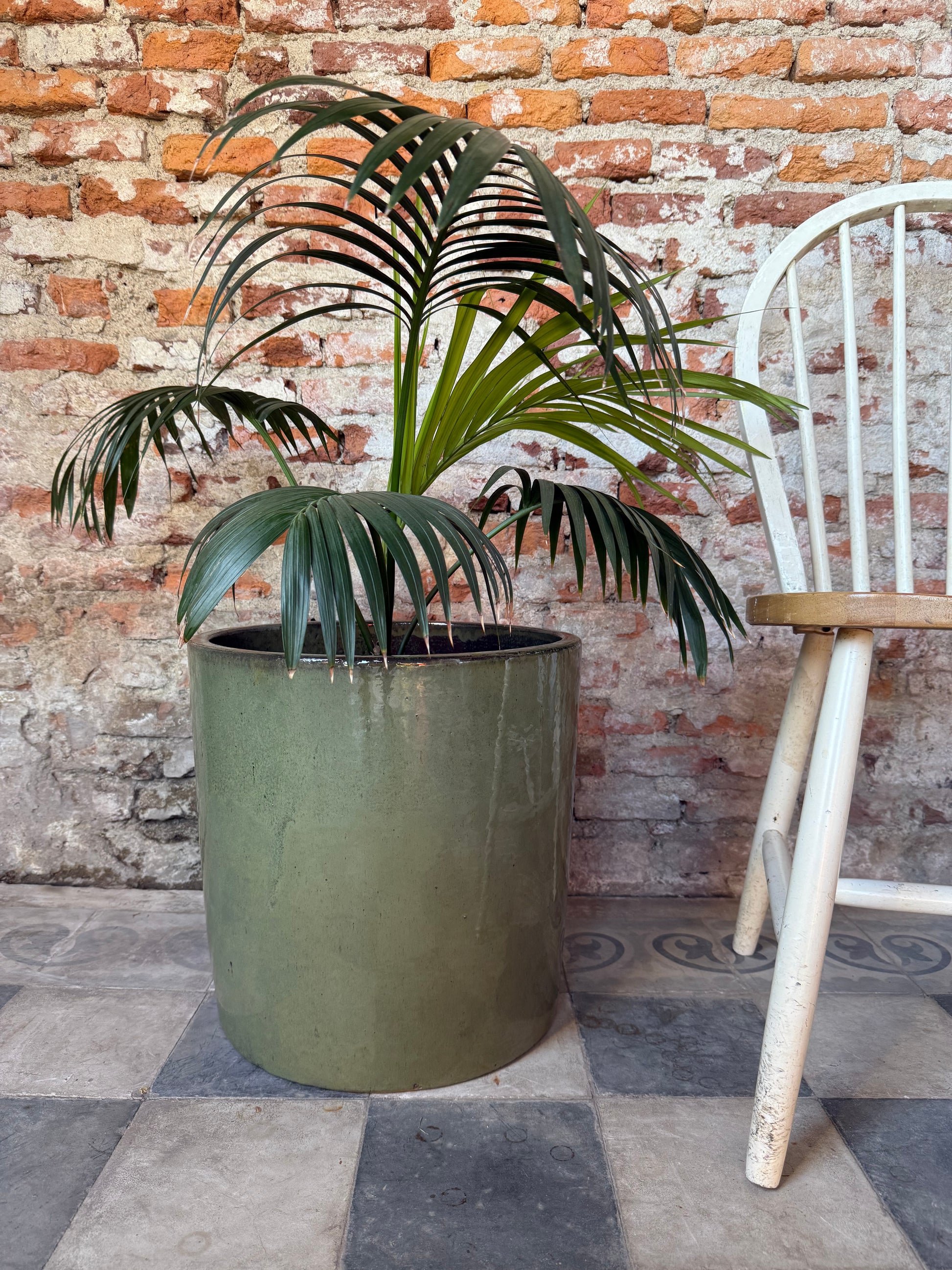 Está vcp con forma cilíndrica y estilo sobrio, perfecta para sumar frescura y armonía a cualquier ambiente. su tono verde oliva acompaña tanto espacios interiores como exteriores con un aire natural y elegante.