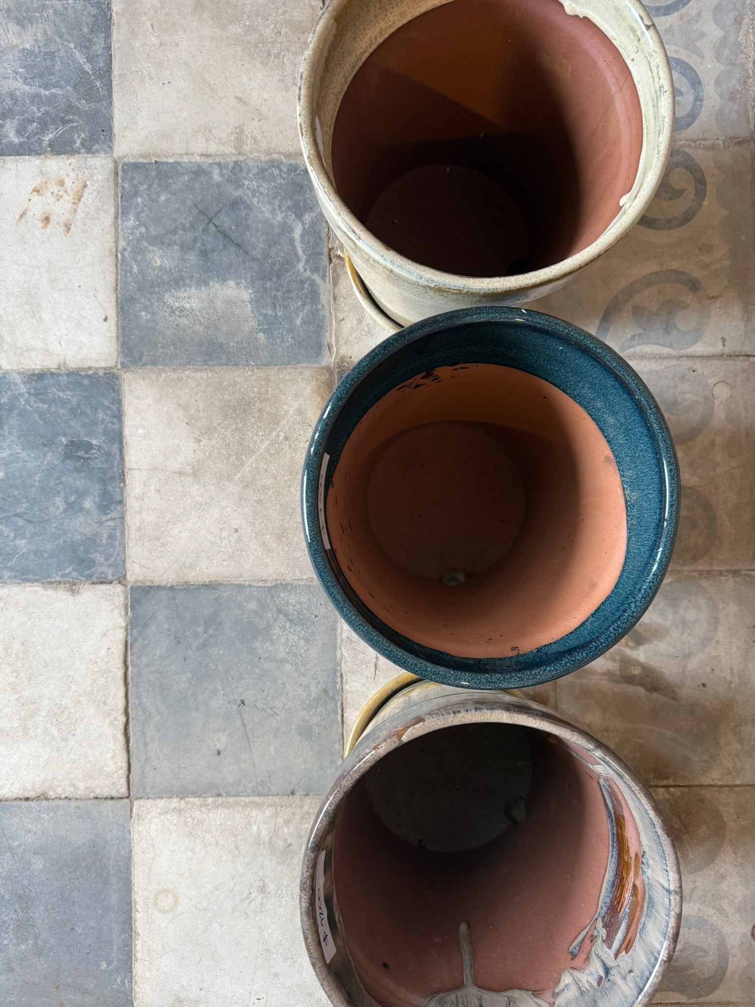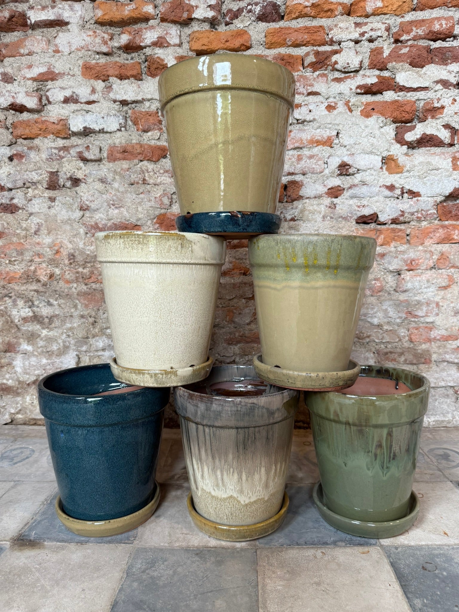 Ninguna es igual a otra: cada maceta tiene un degradé y vetas únicas, propias del esmaltado.