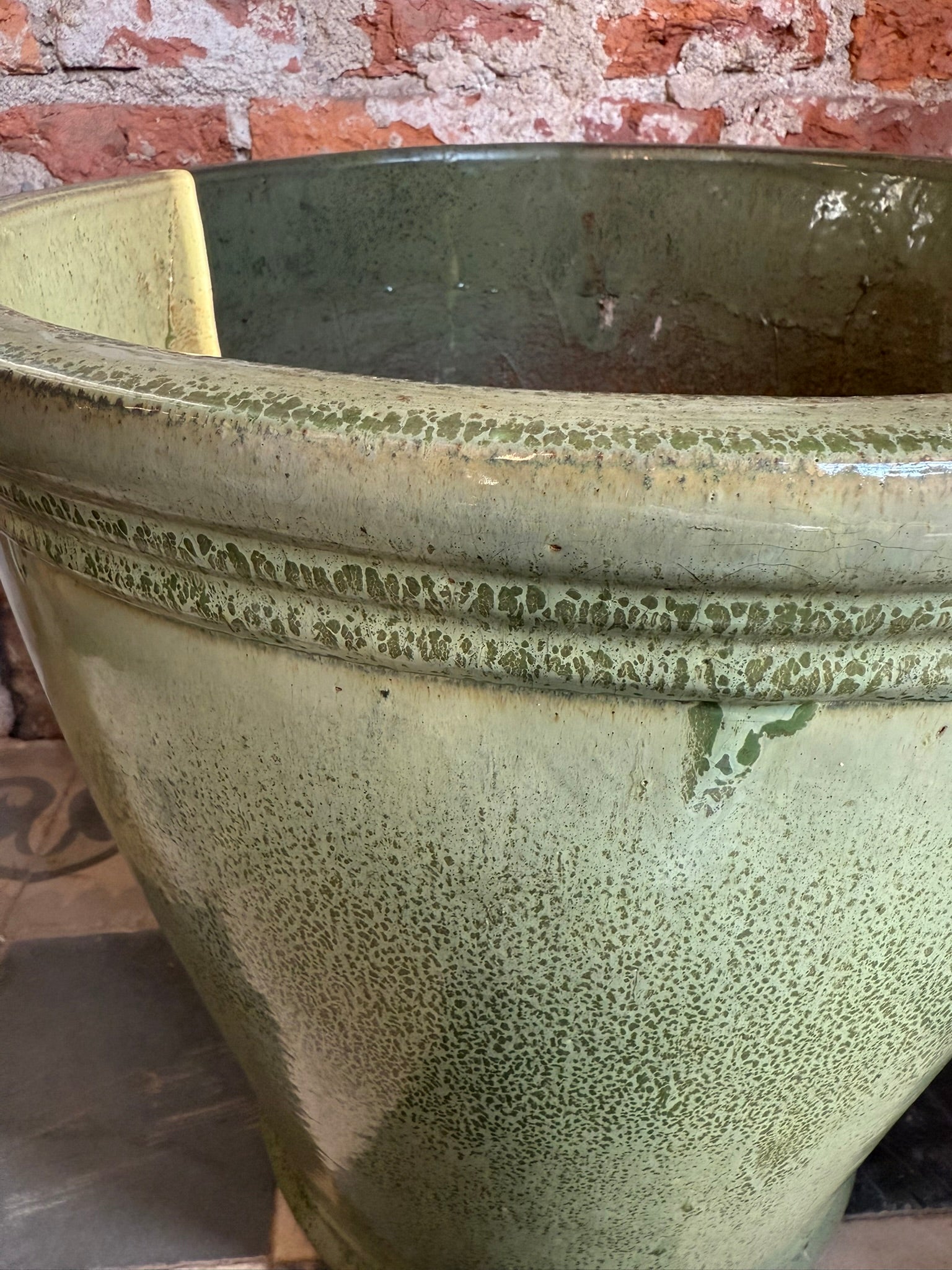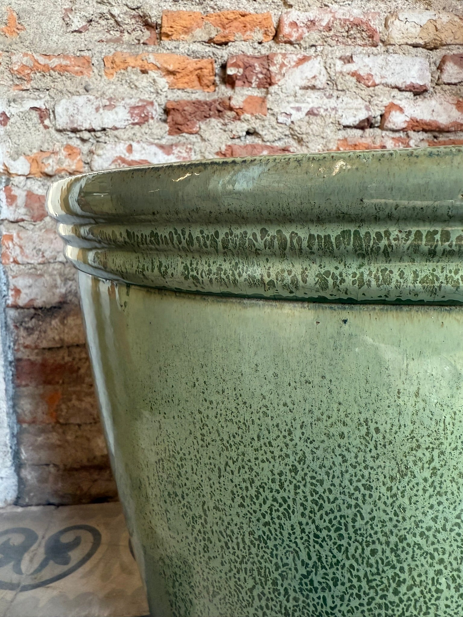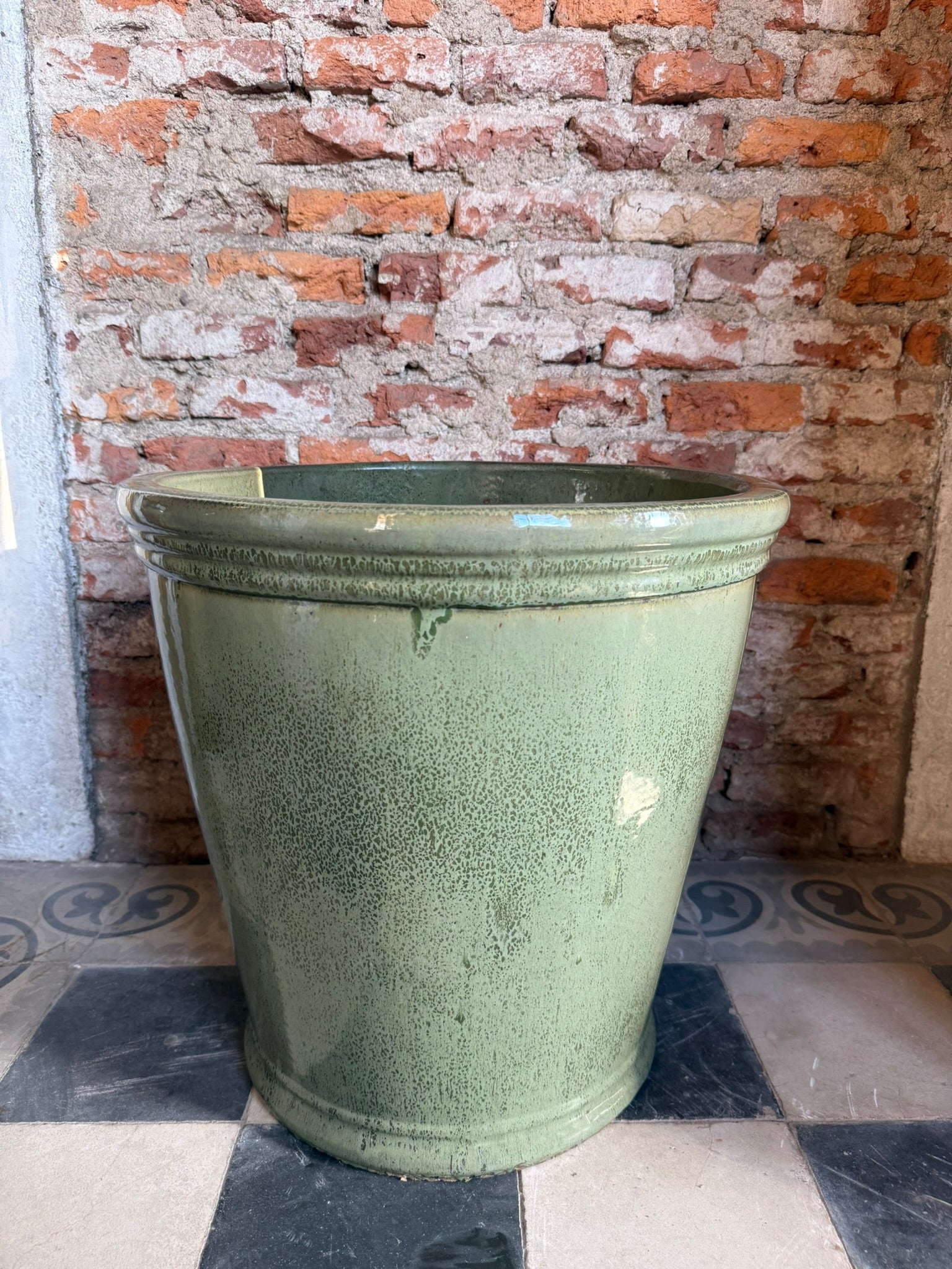 Una maceta que combina lo rústico con lo refinado, perfecta para plantas de gran puerta o follaje colgante.