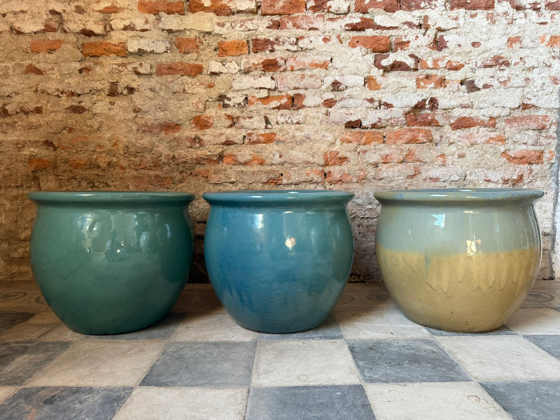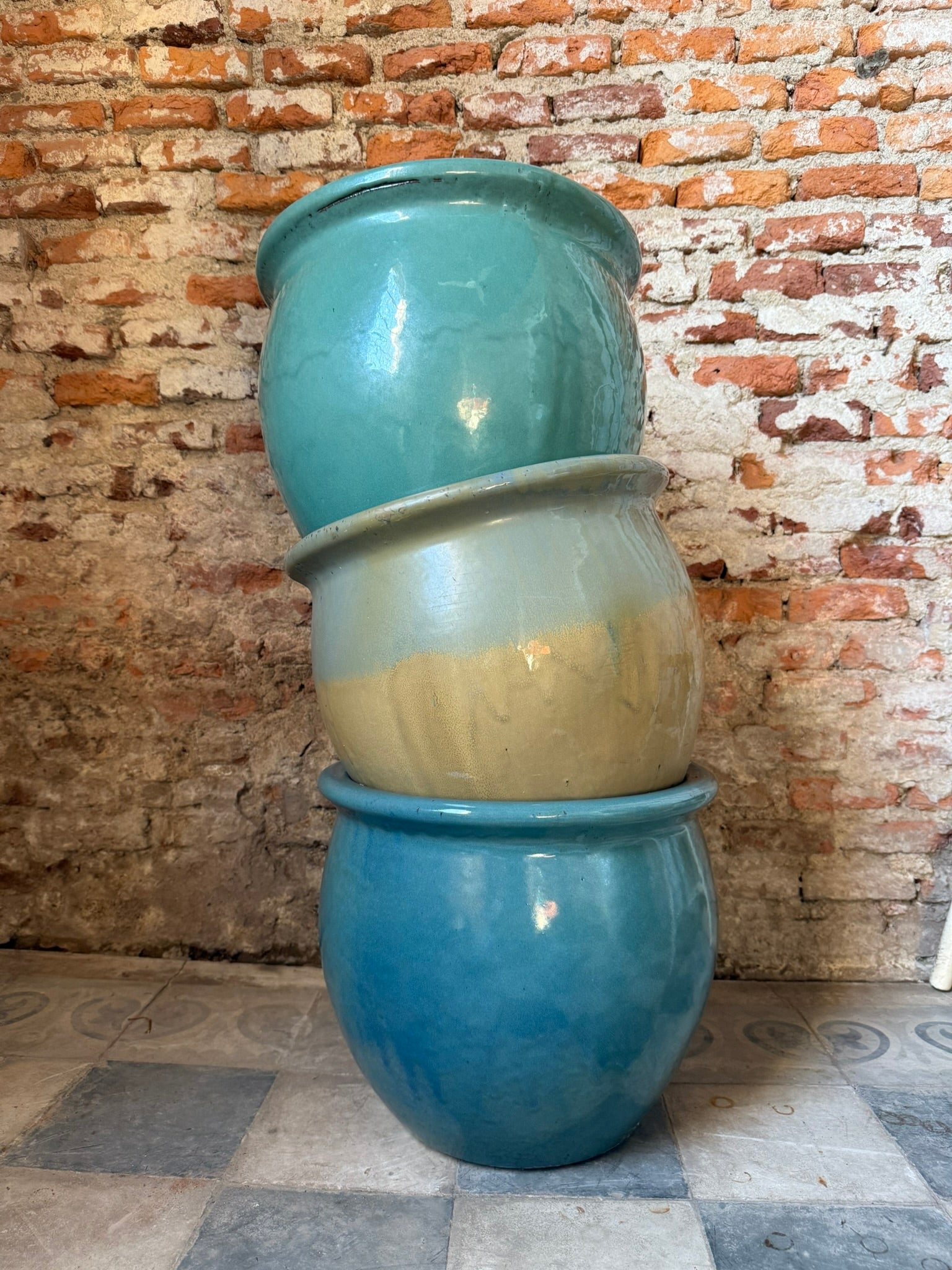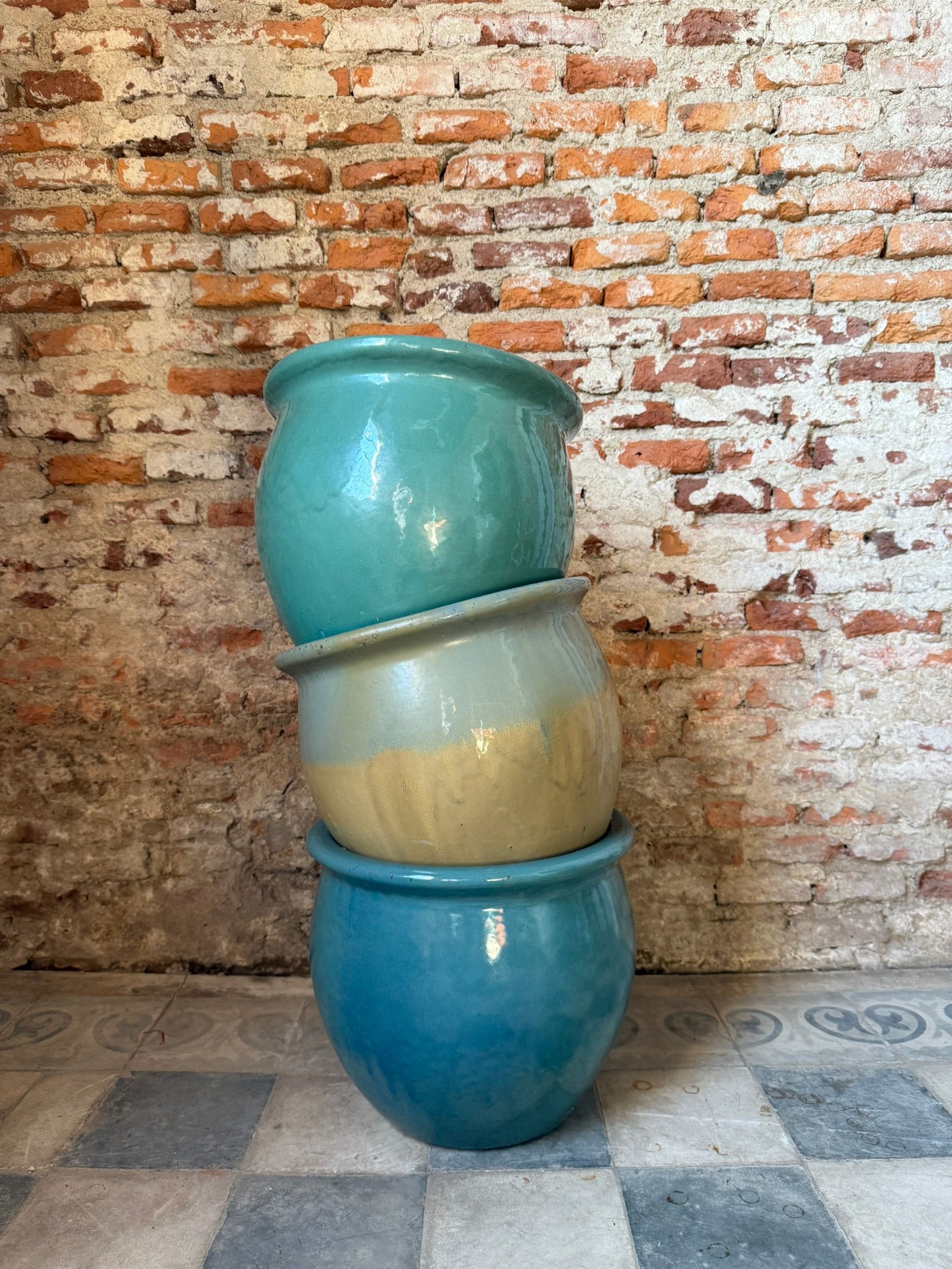 Estas macetas tienen un diseño más ancho y bajito, con ese borde plano que le da un aire clásico pero moderno. Cada color tiene su magia: del verde agua al degrade arena, todas quedan increíbles en interiores luminosos o patios con alma.