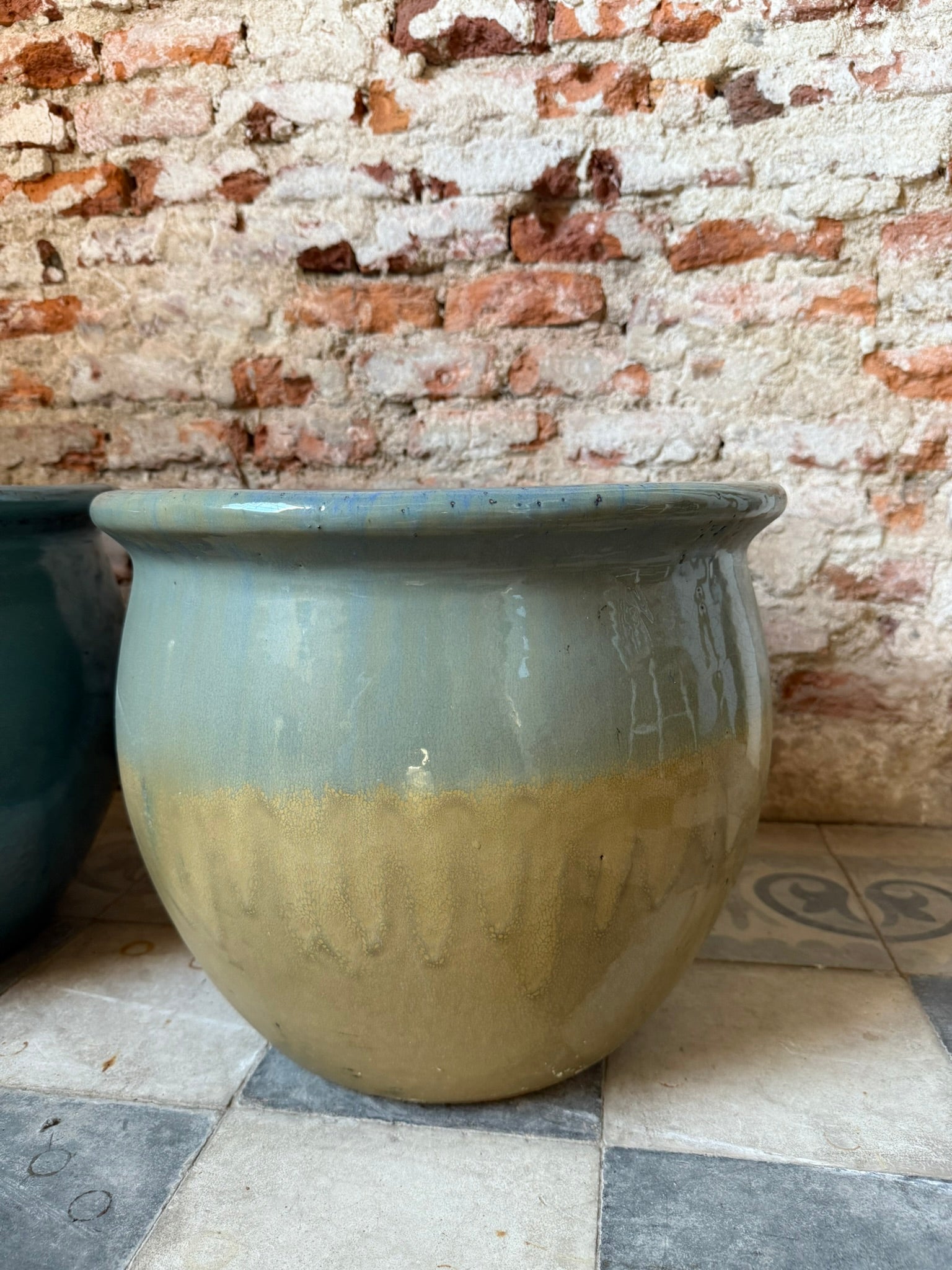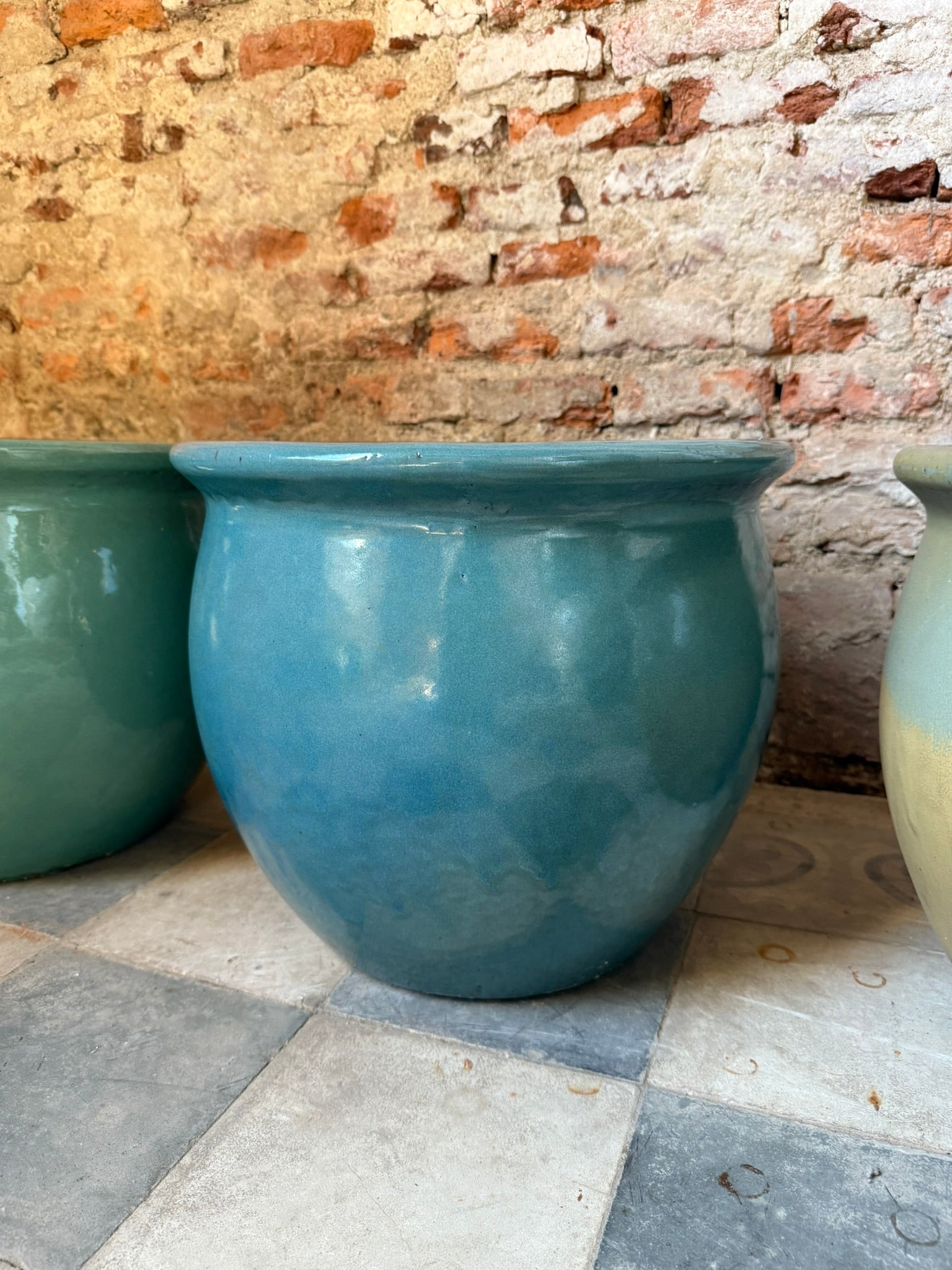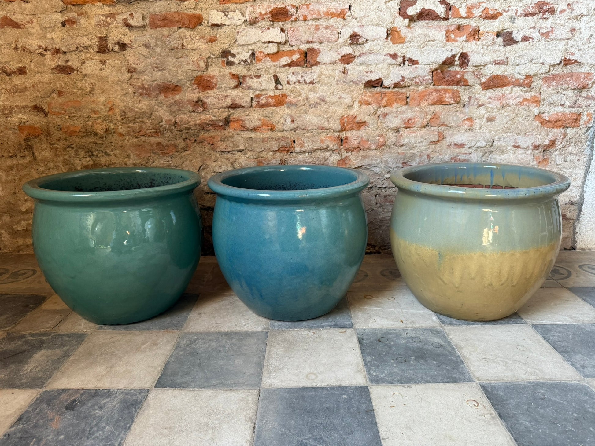 Estas macetas tienen un diseño más ancho y bajito, con ese borde plano que le da un aire clásico pero moderno. Cada color tiene su magia: del verde agua al degrade arena, todas quedan increíbles en interiores luminosos o patios con alma.