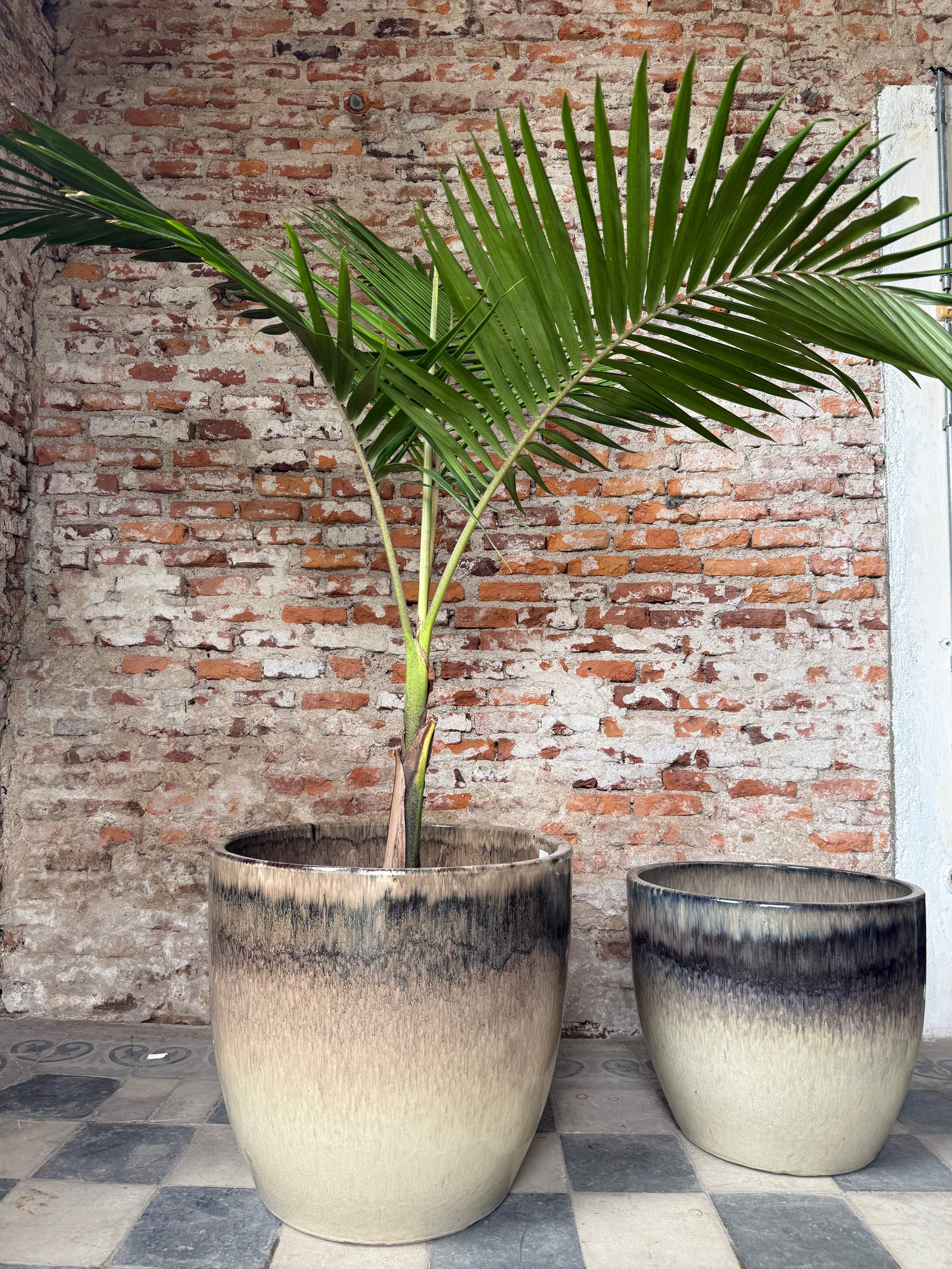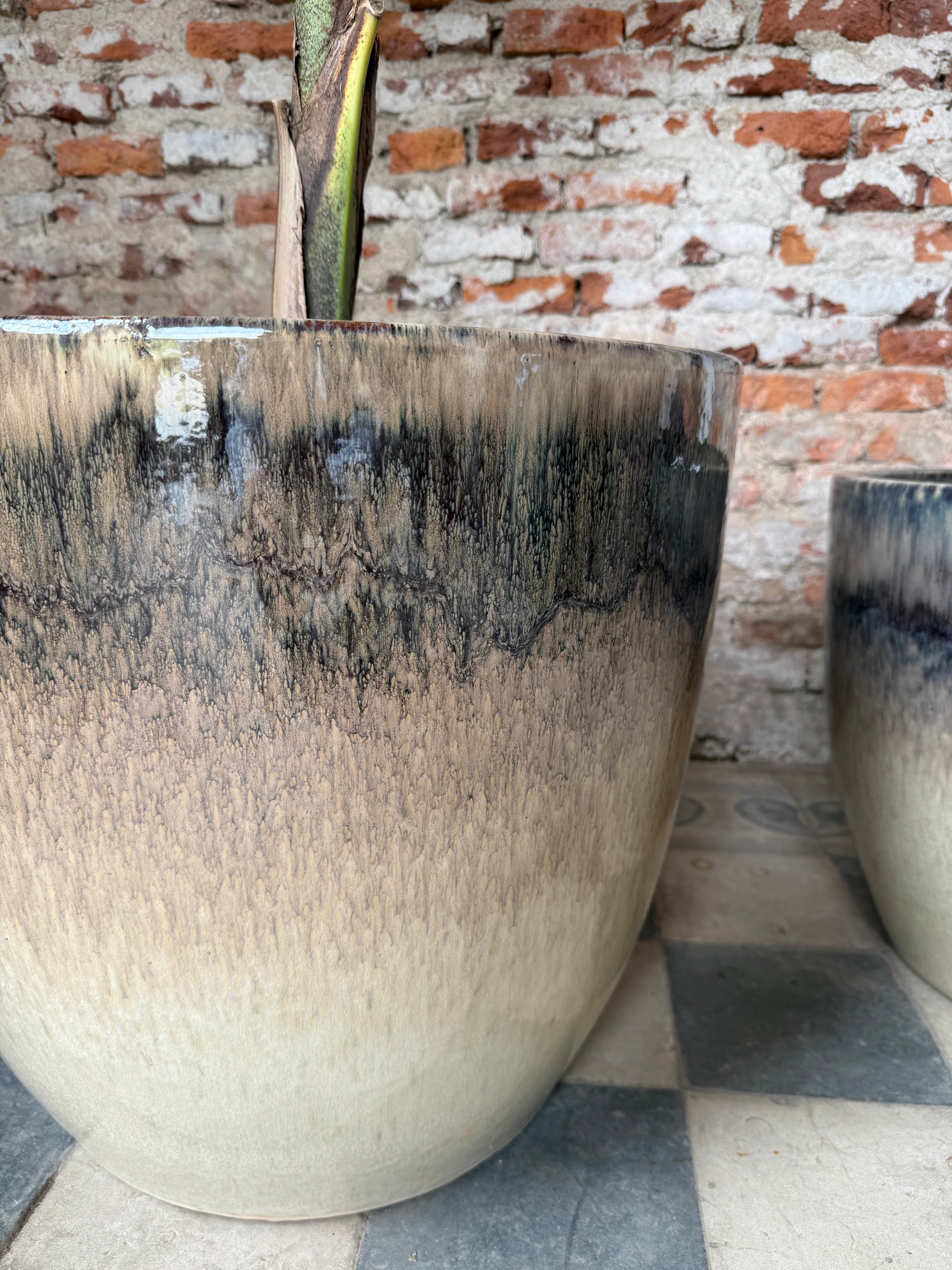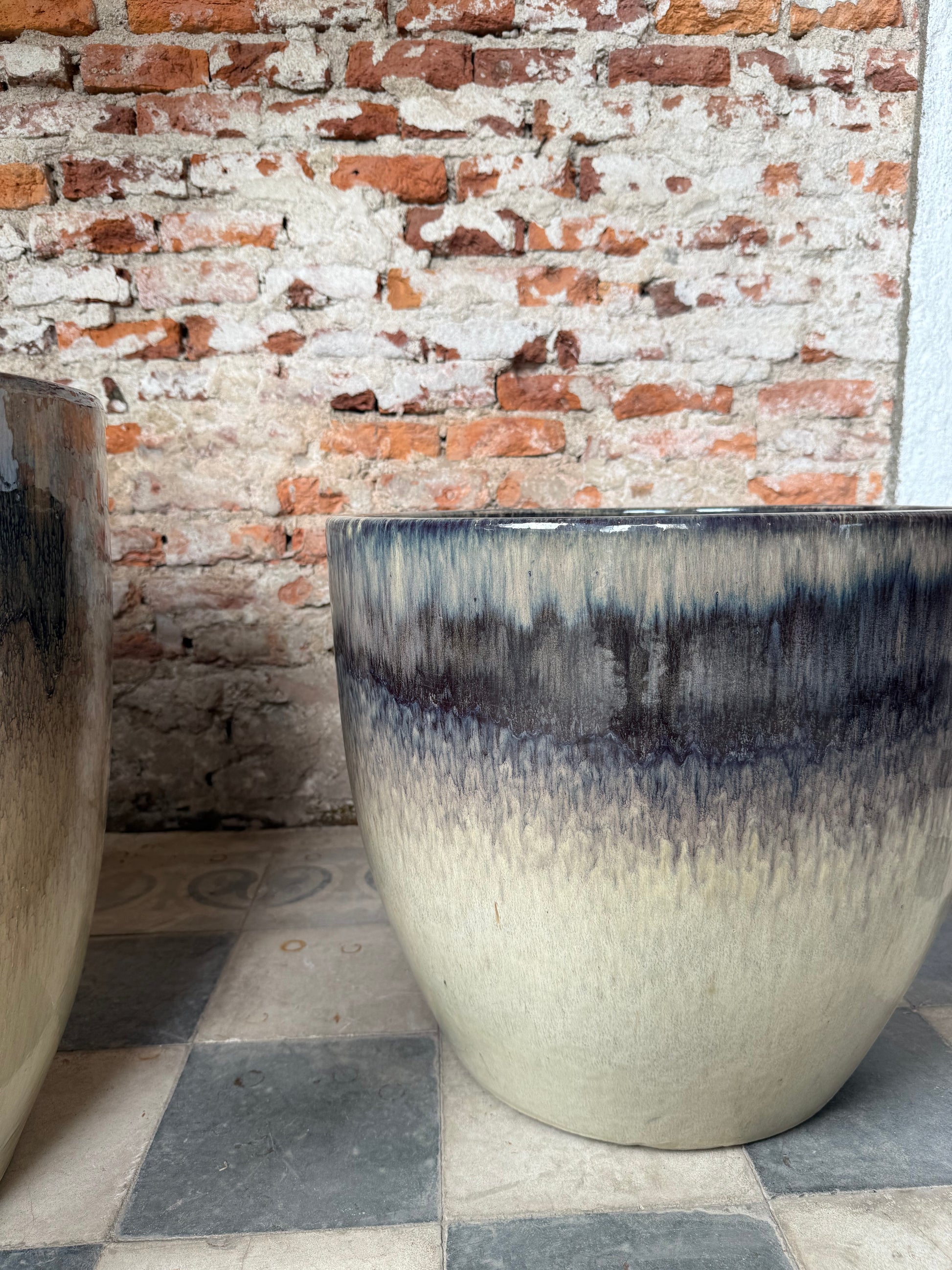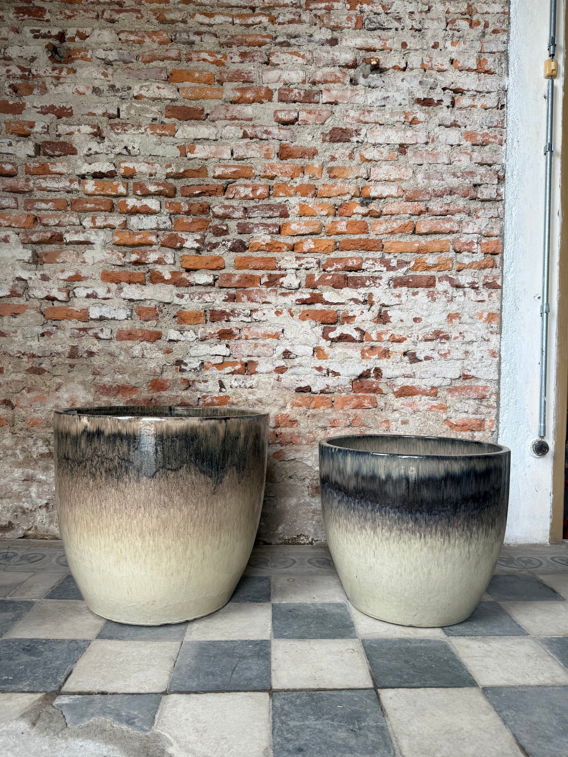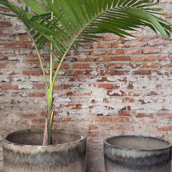 Ninguna pieza es igual a otra: cada maceta presenta vetas y variaciones únicas, fruto del esmaltado artesanal.