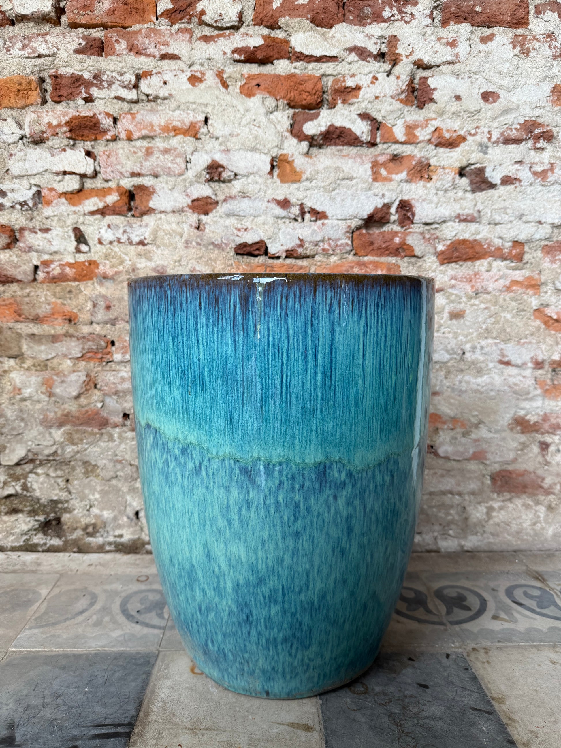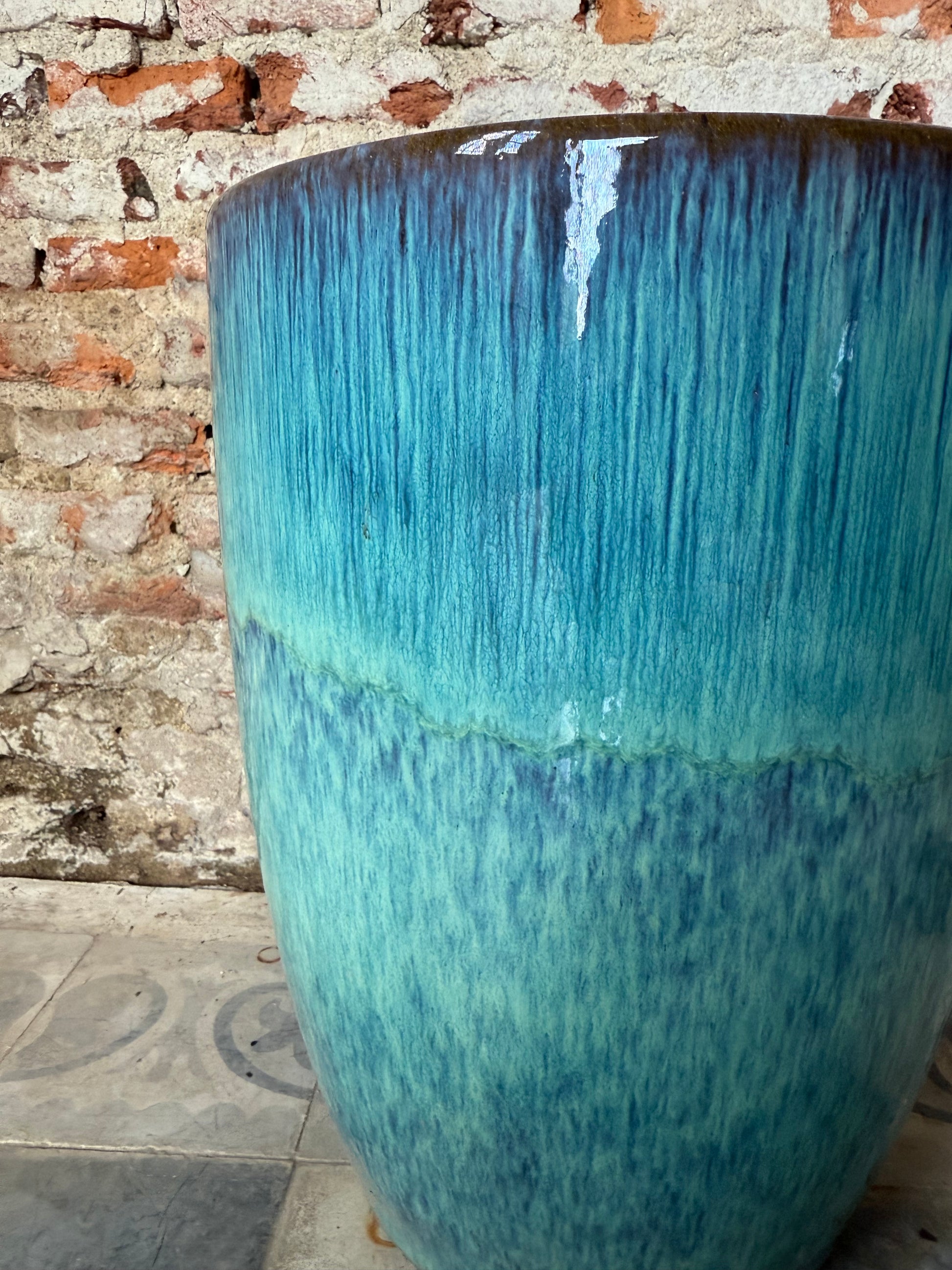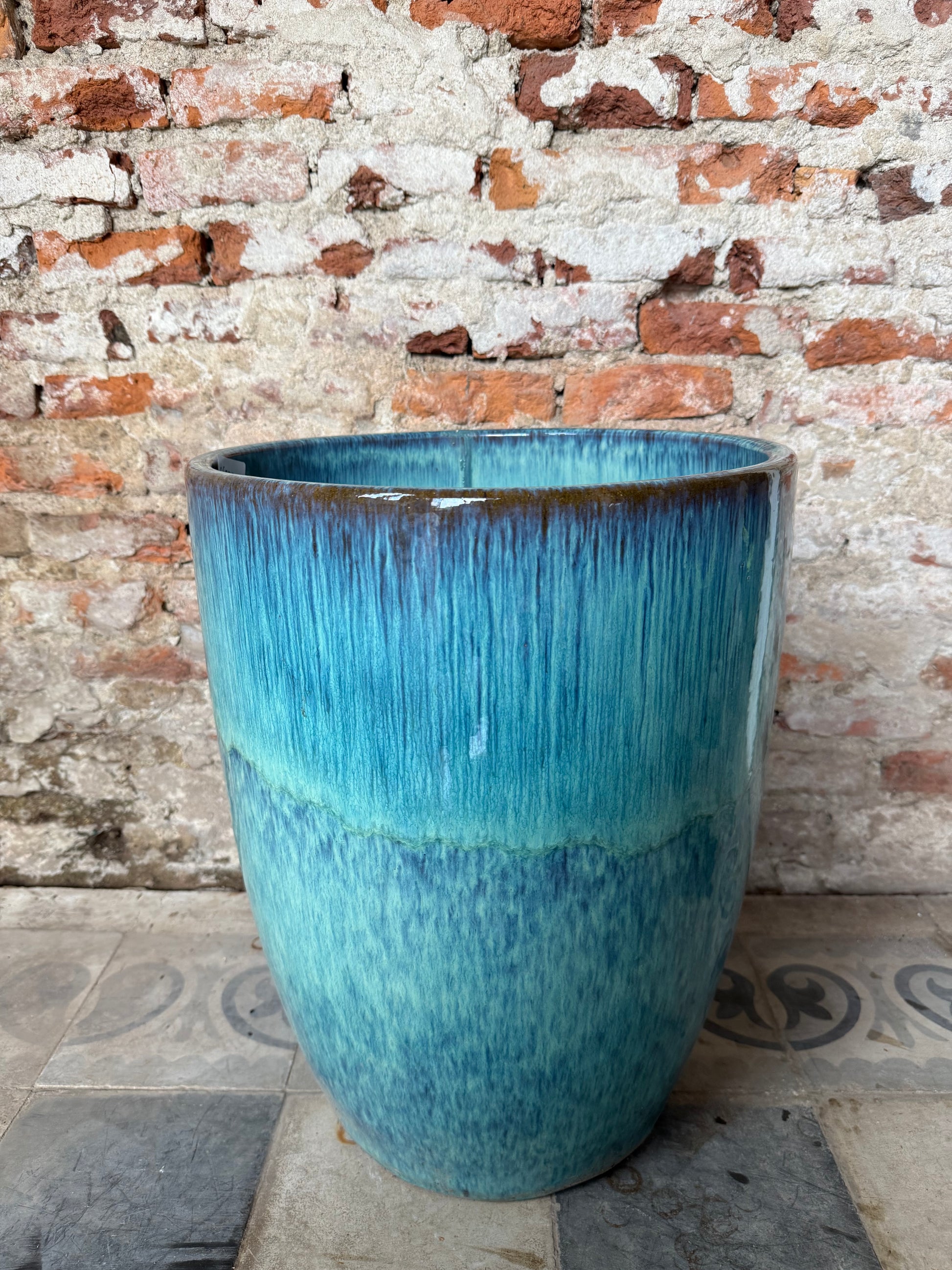 De forma estilizada y equilibrada, es ideal para resaltar tanto plantas tropicales como especies de follaje ligero, logrando composiciones que combinan elegancia y vitalidad. Cada pieza, gracias a su esmaltado artesanal, presenta matices y texturas irrepetibles que la convierten en un objeto de carácter exclusivo.