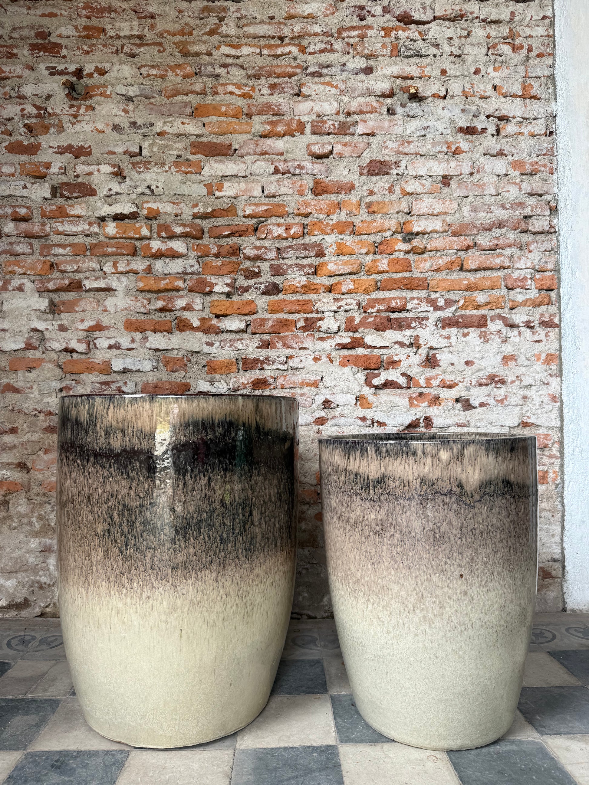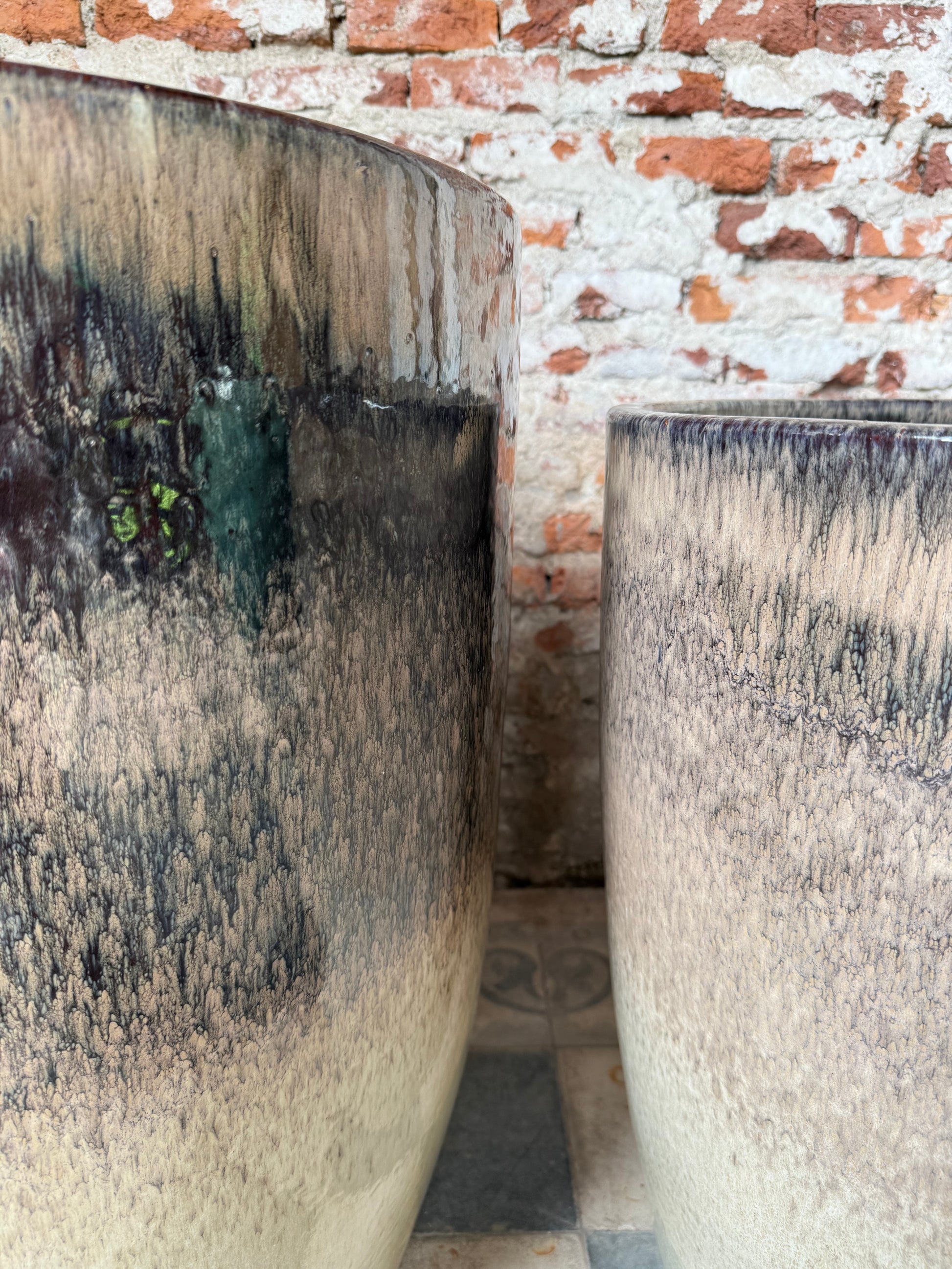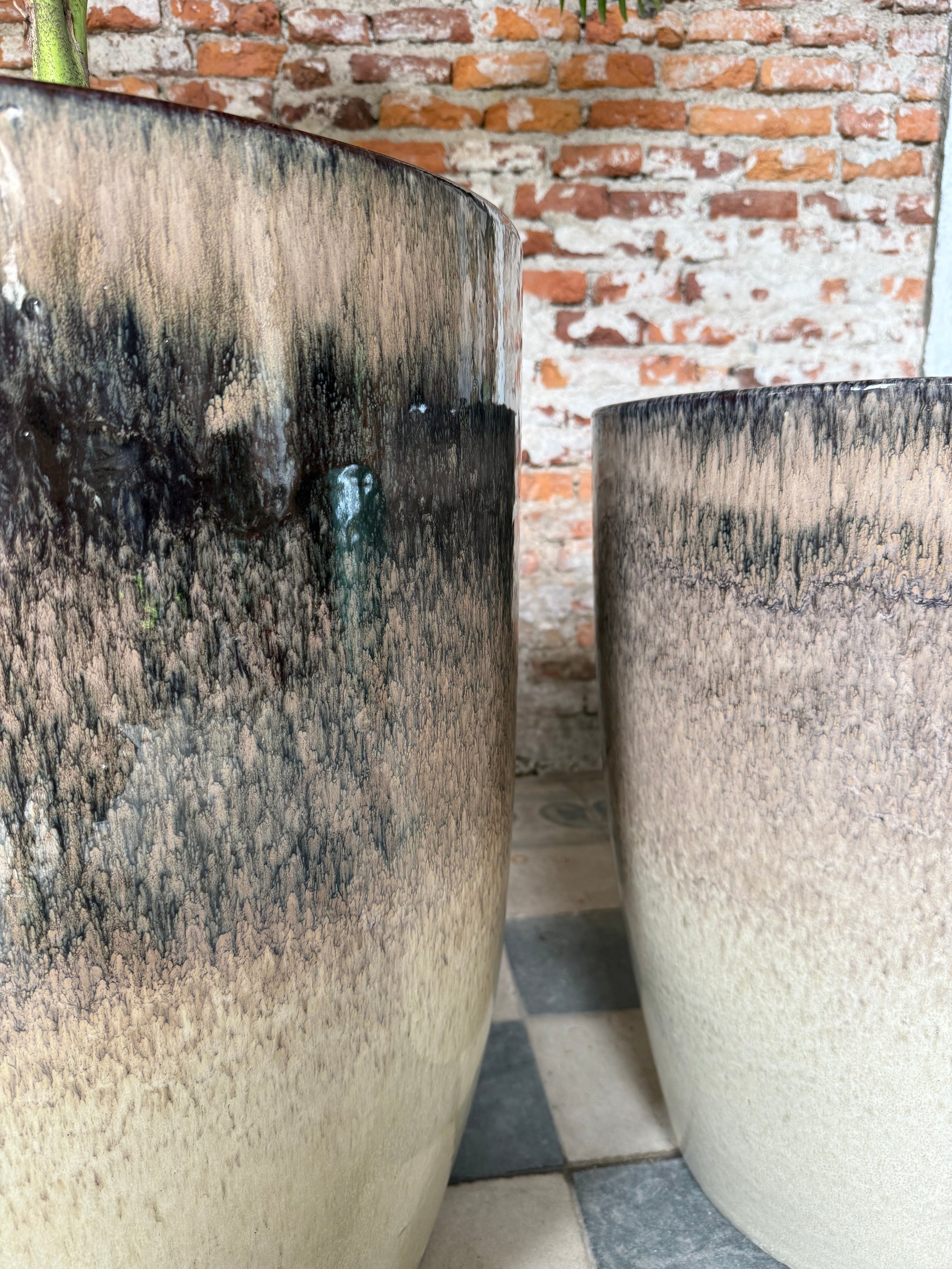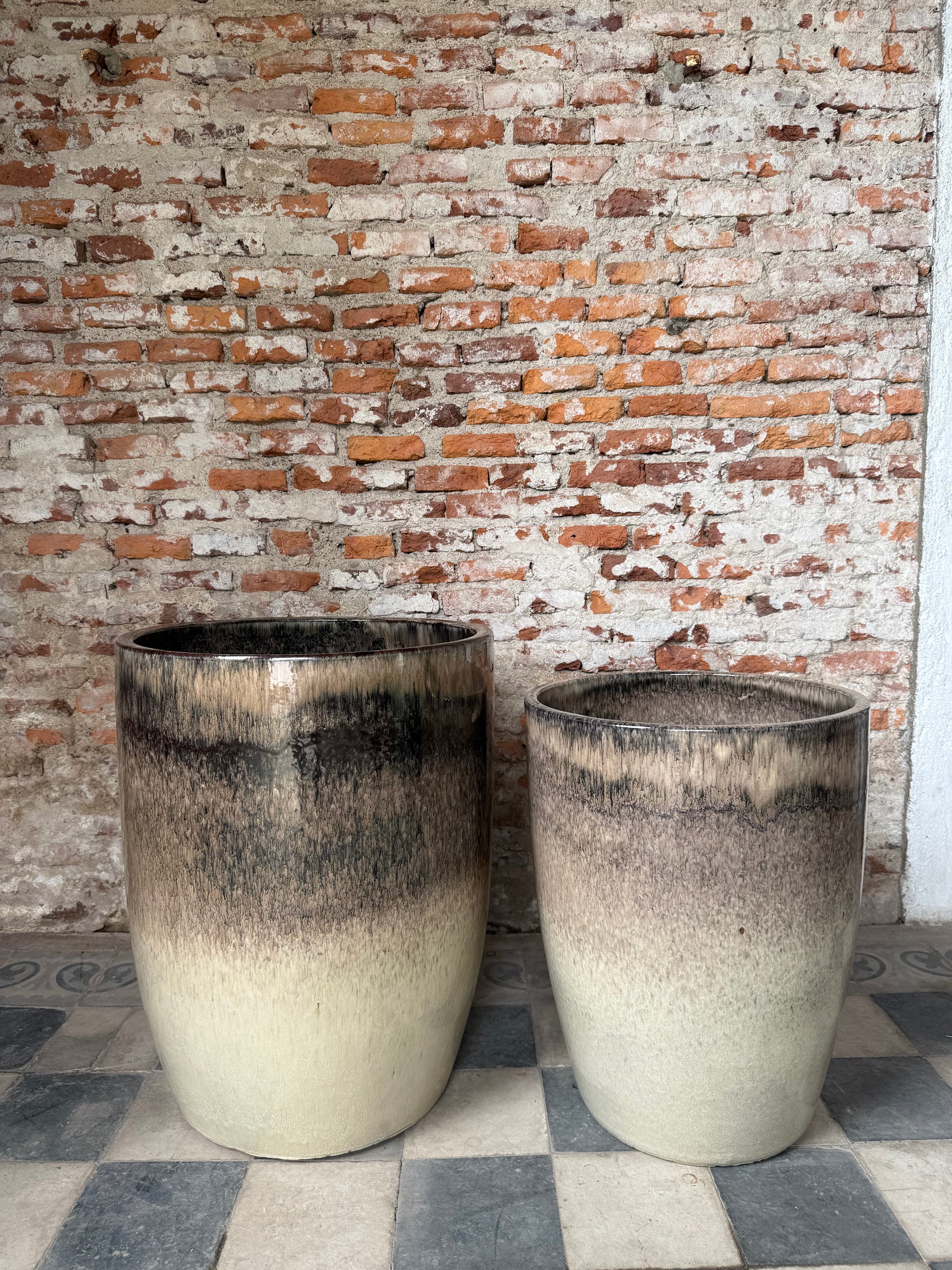 El esmaltado crea un juego de matices sutiles que varían con la luz, dando a cada maceta un carácter único e irrepetible.