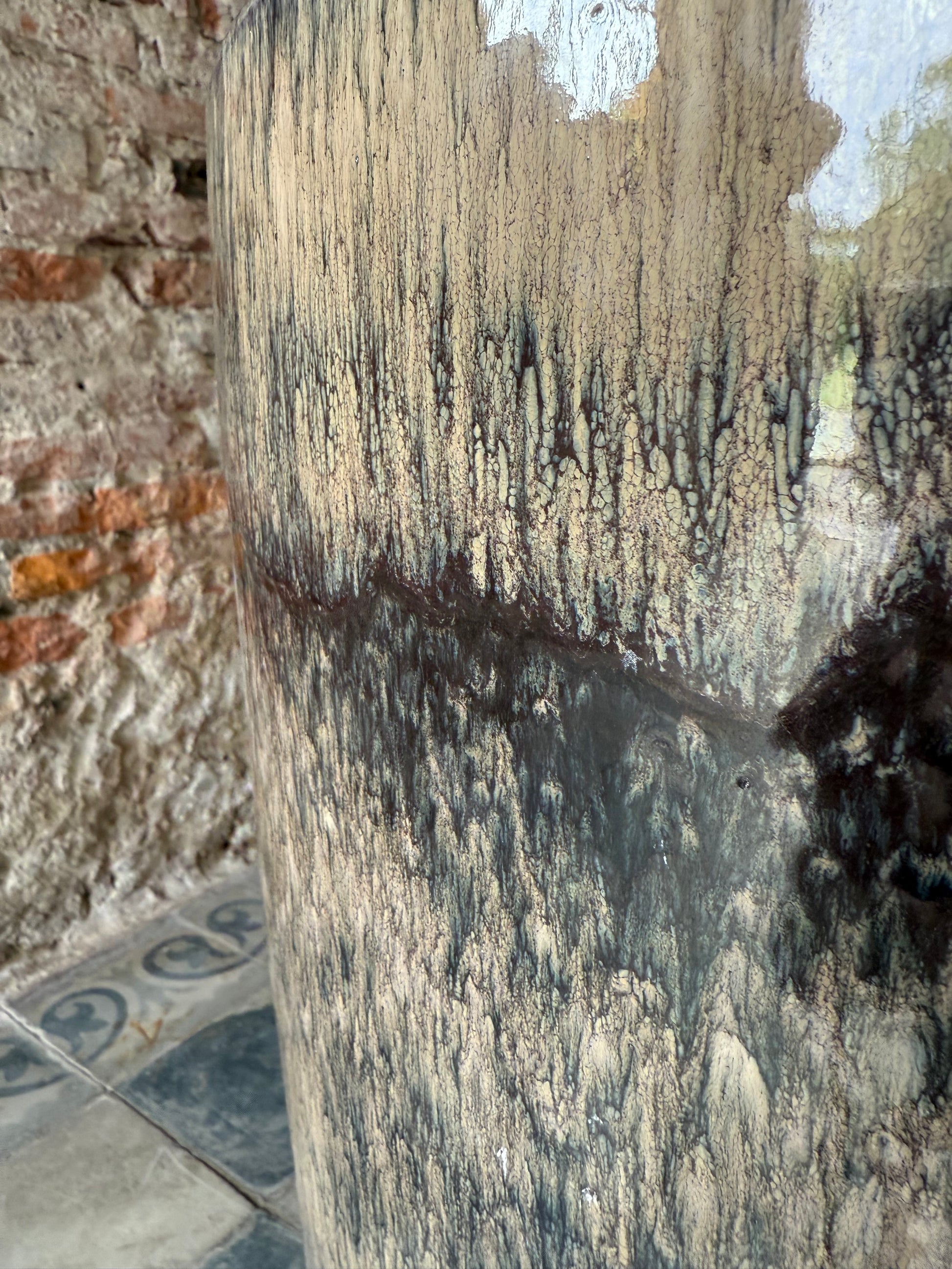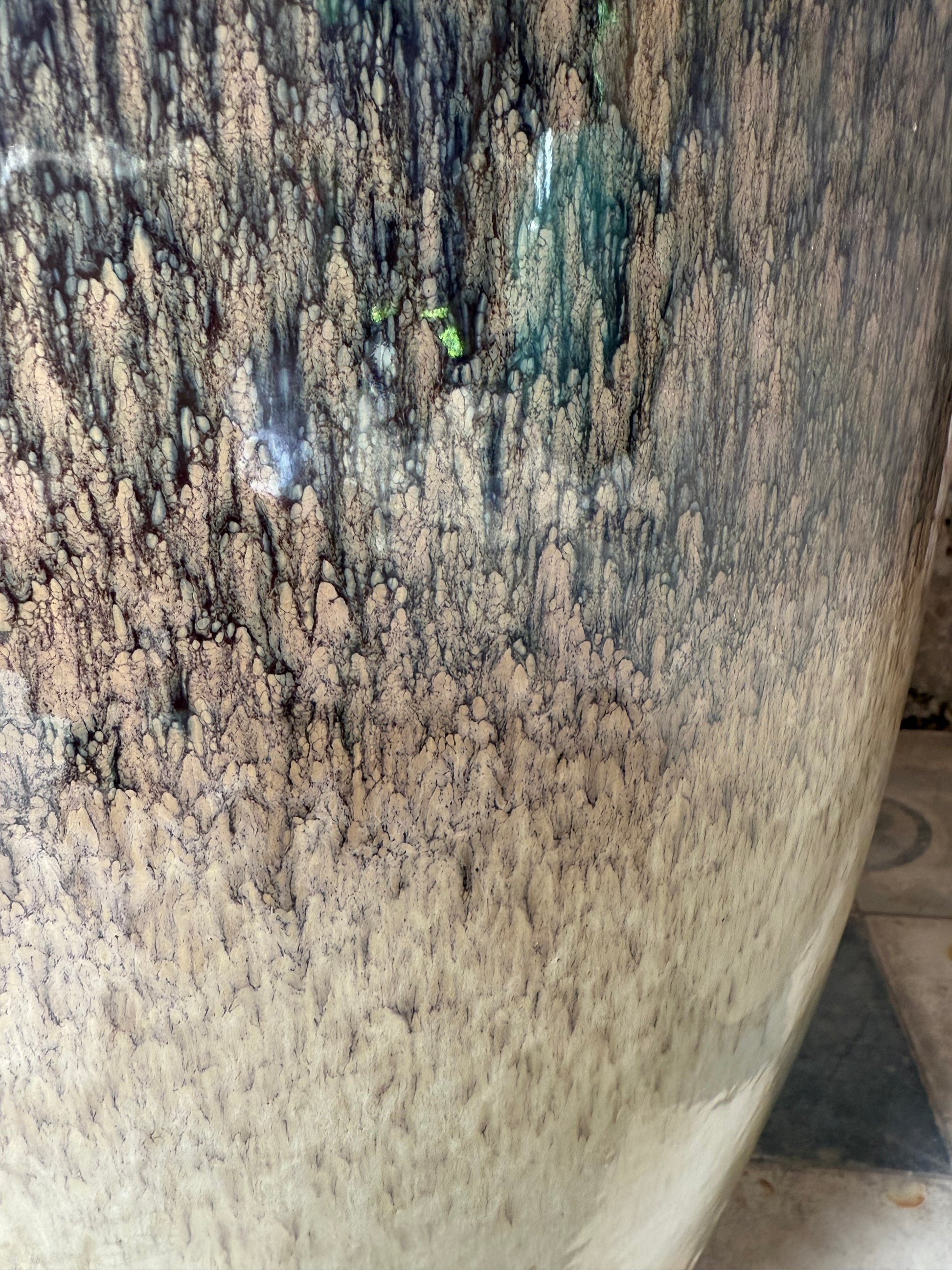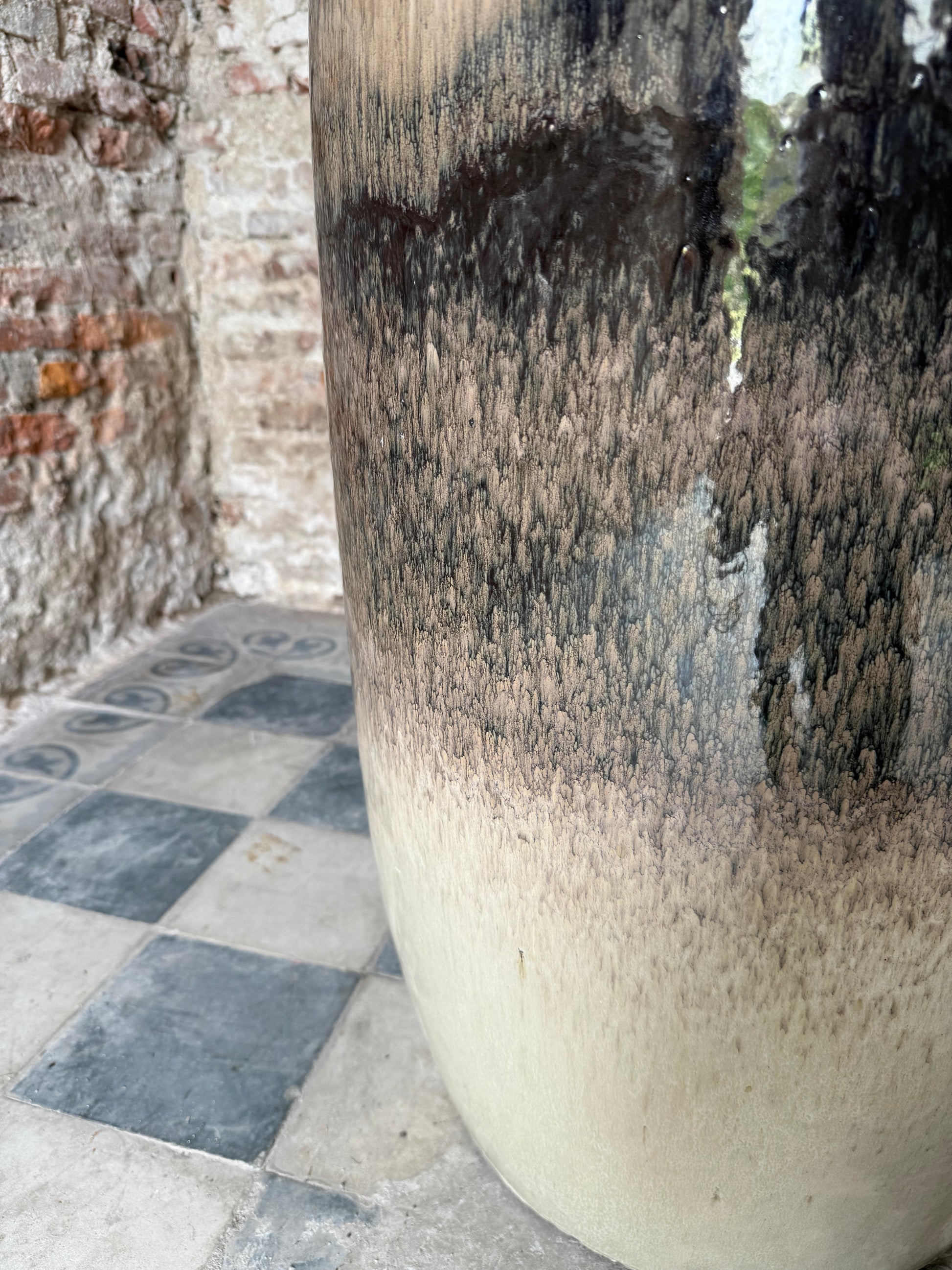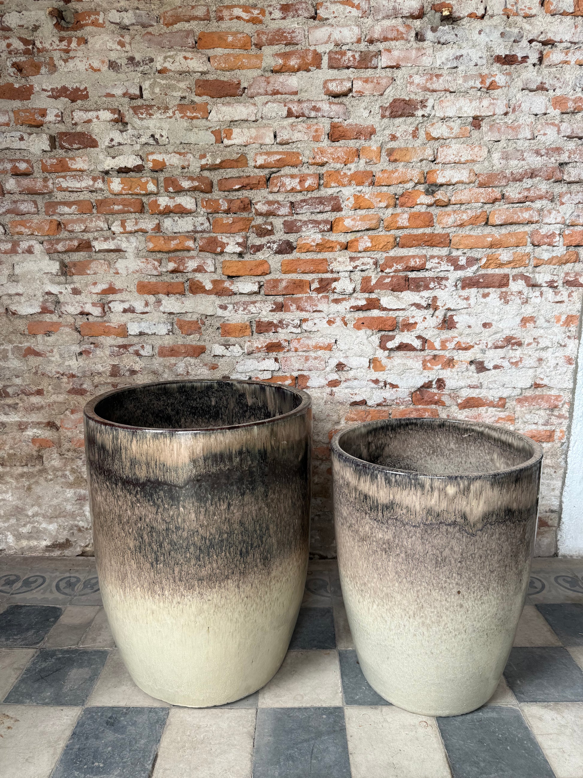 El esmaltado crea un juego de matices sutiles que varían con la luz, dando a cada maceta un carácter único e irrepetible.