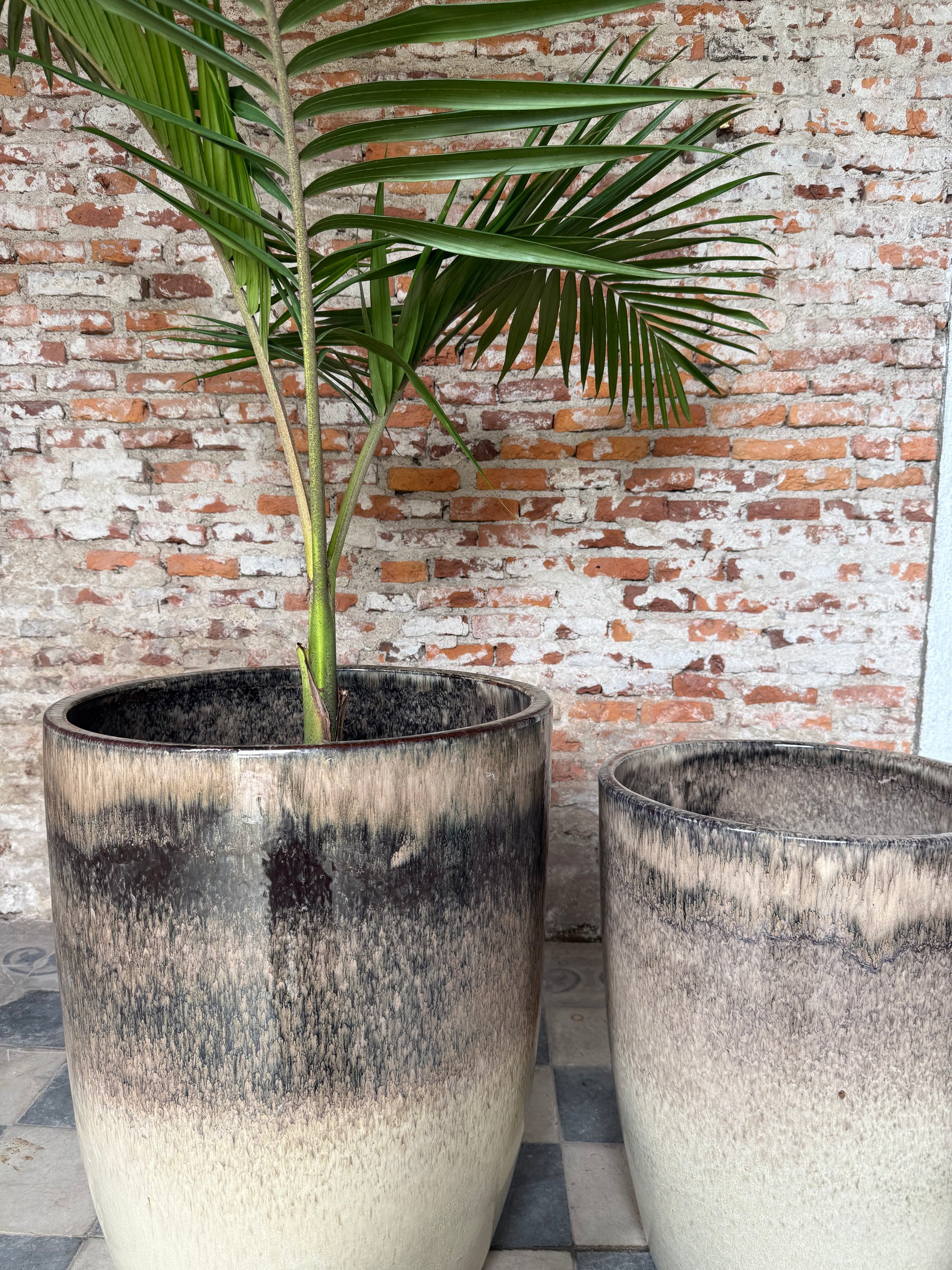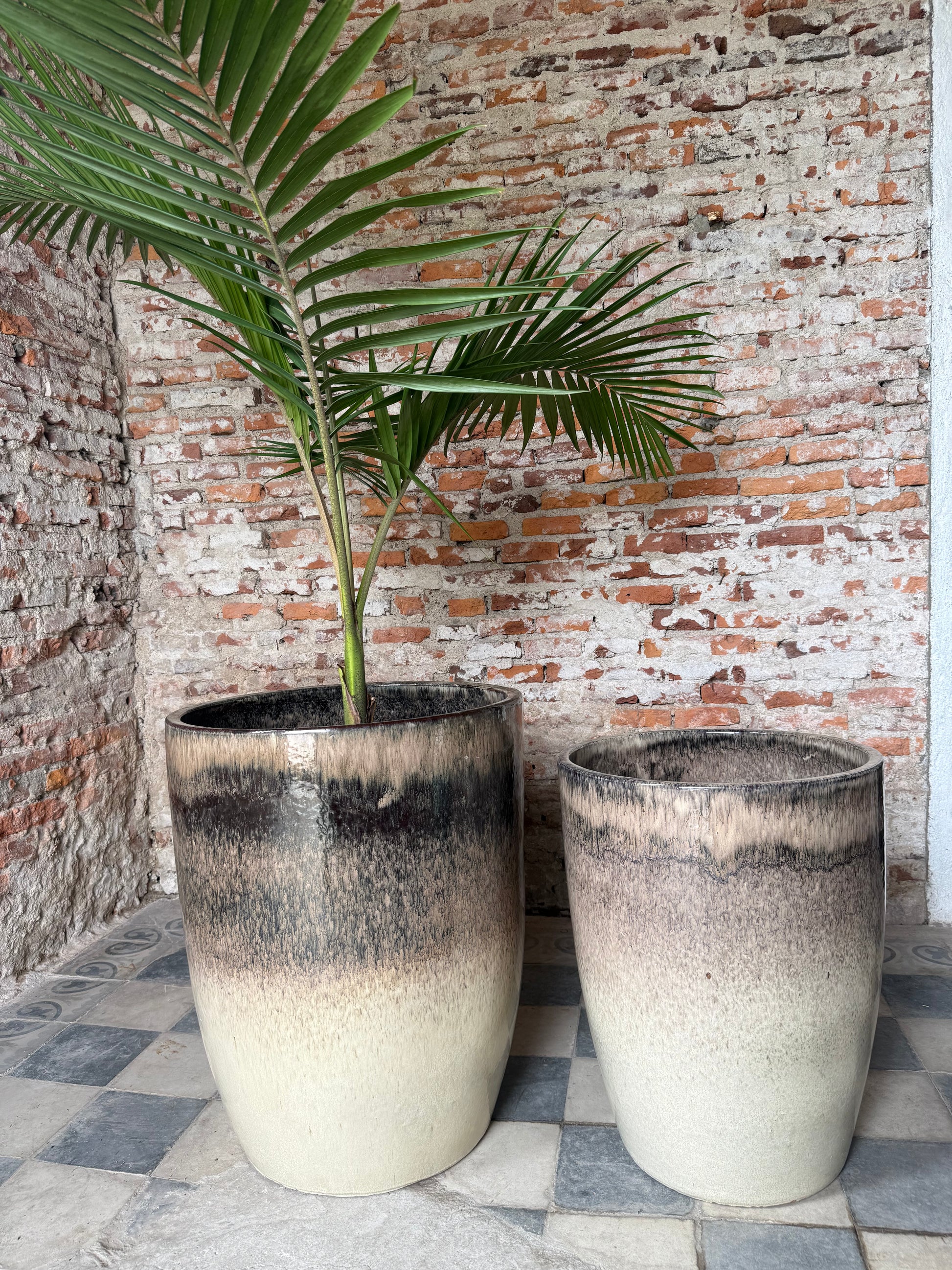 La Regalía Beigrisar es sinónimo de sobriedad y sofisticación. Con su acabado en tonos beige y gris, aporta un aire moderno y sereno que combina con cualquier estilo de decoración. Su forma amplia y equilibrada resalta tanto plantas de follaje frondoso como ejemplares de porte medio, convirtiéndola en una pieza versátil y elegante.