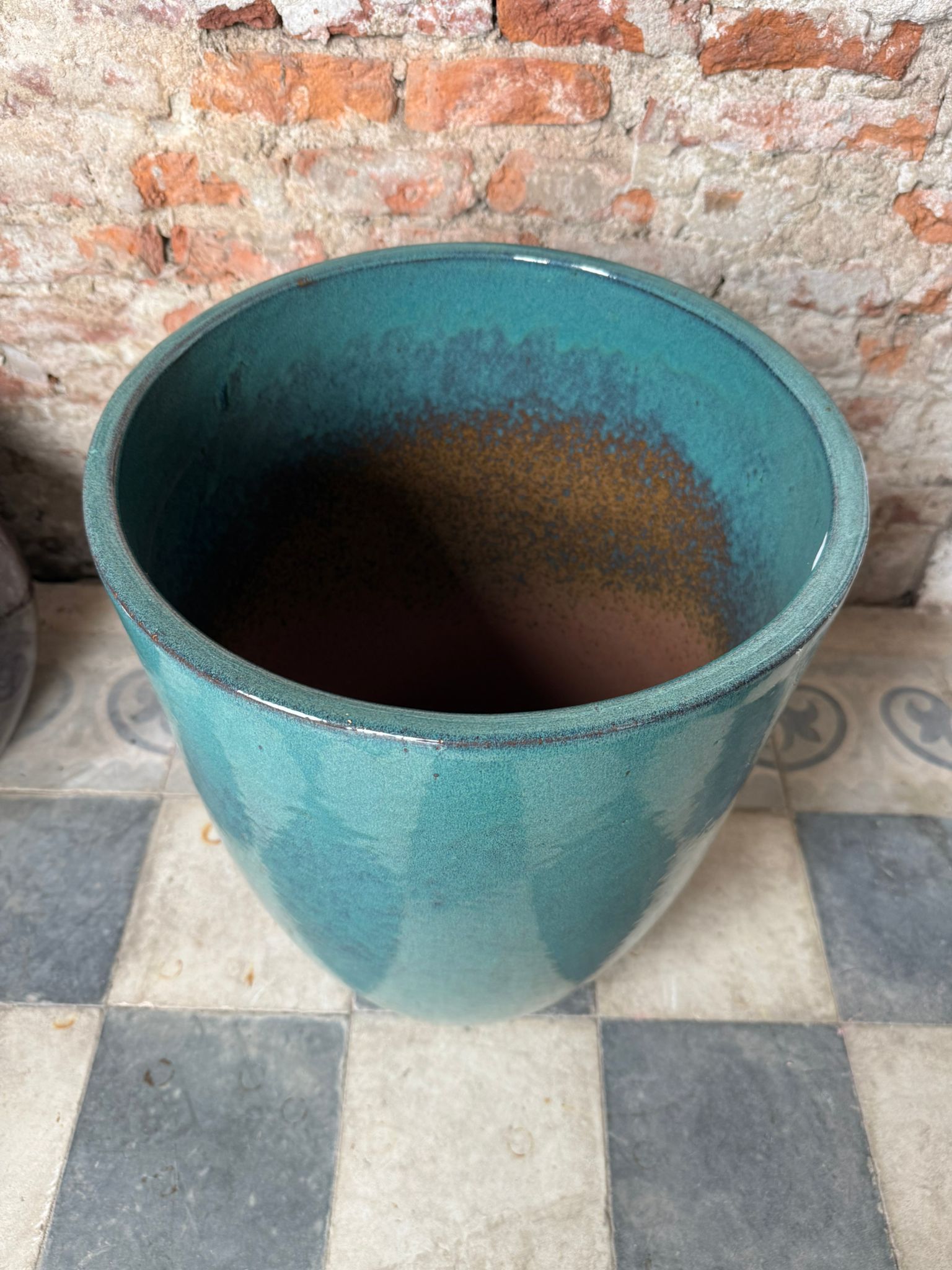 El esmalte genera un degradado suave con vetas que cambian según la luz, y hacen que cada maceta sea única.