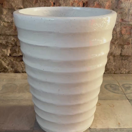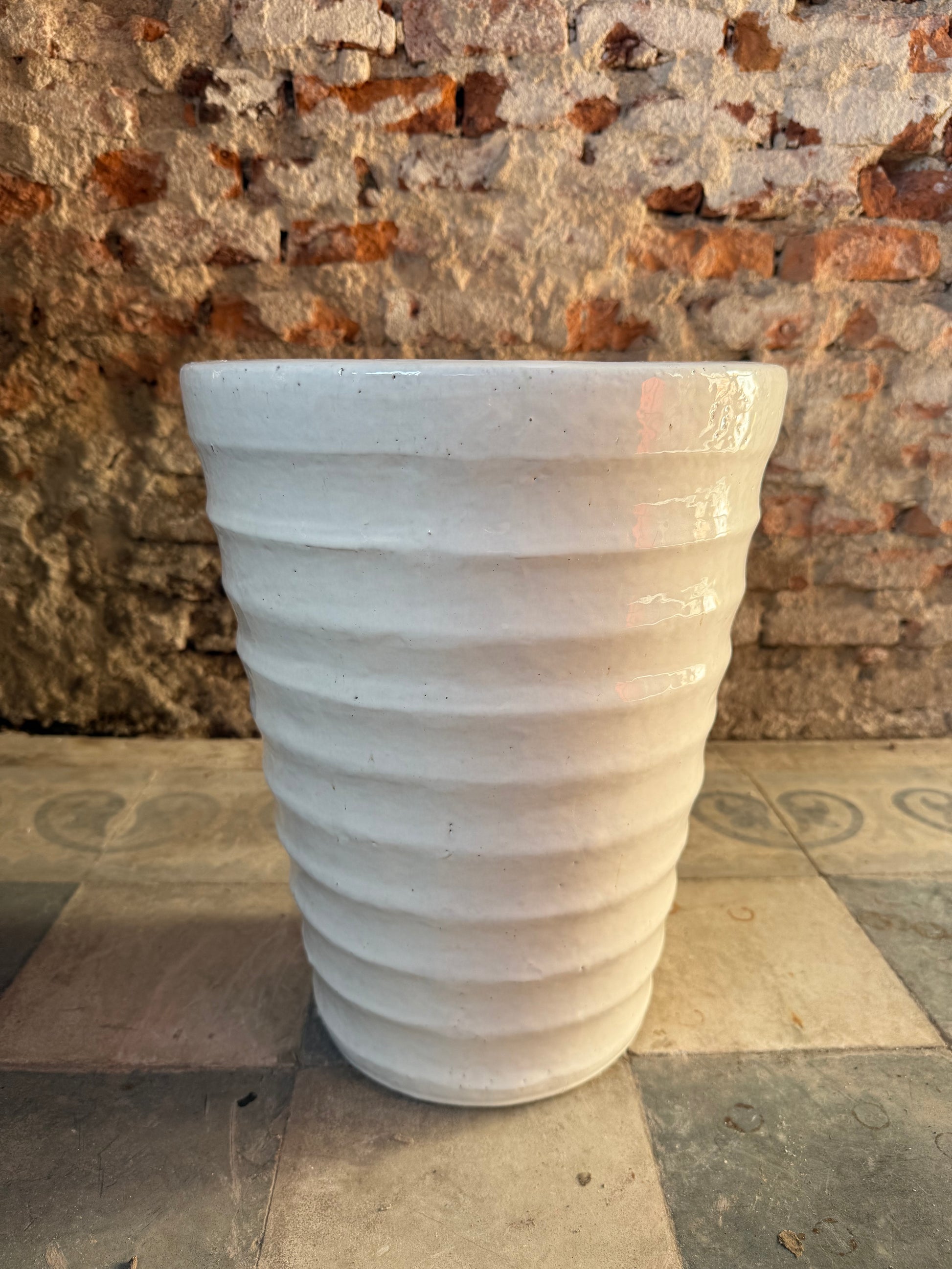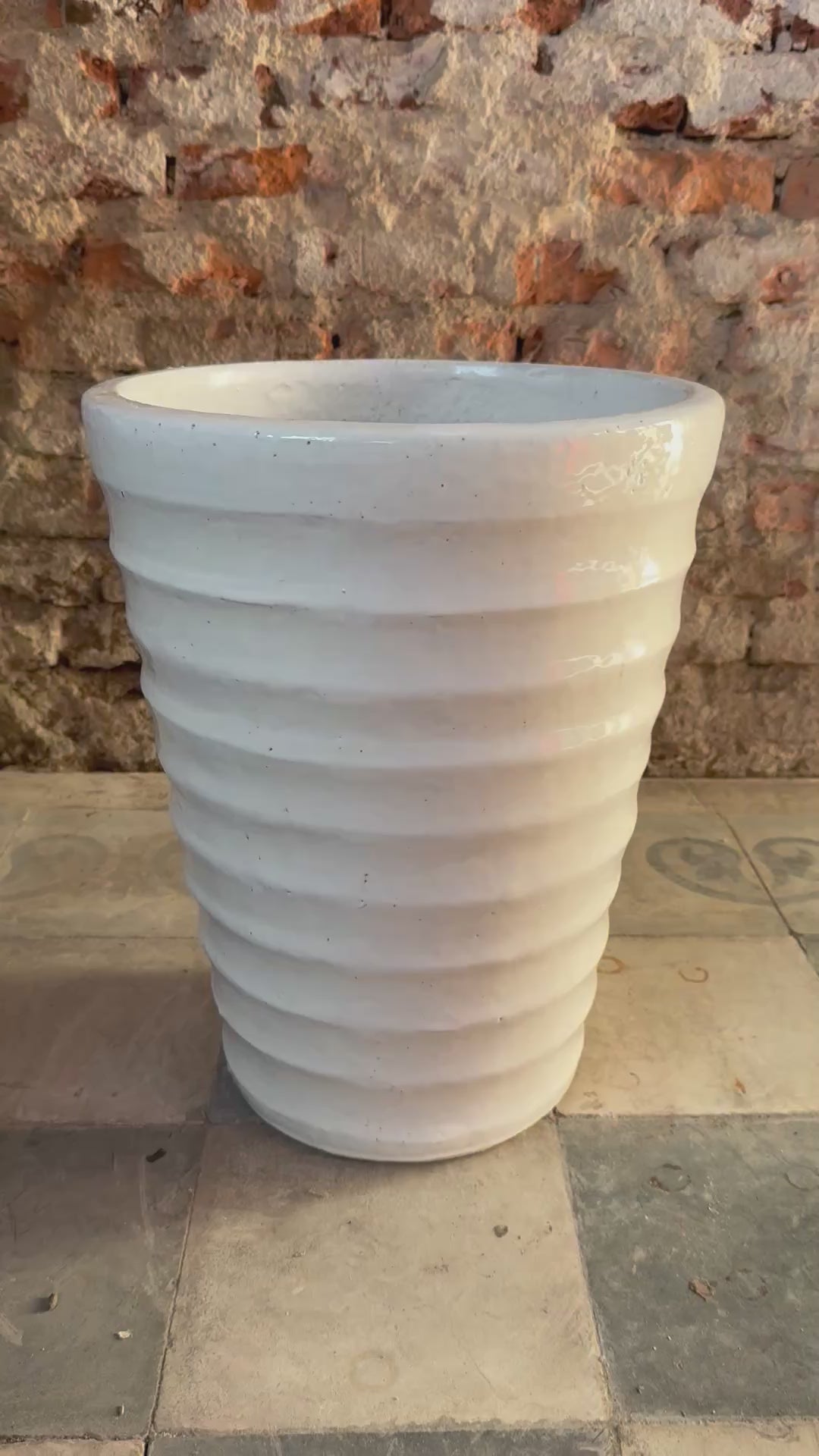 modelo éclat acanalada en color blanco. tiene una pequeña cachadura con falta de esmalte y alguna terminación algo desprolija. no afecta en absoluto su uso.
