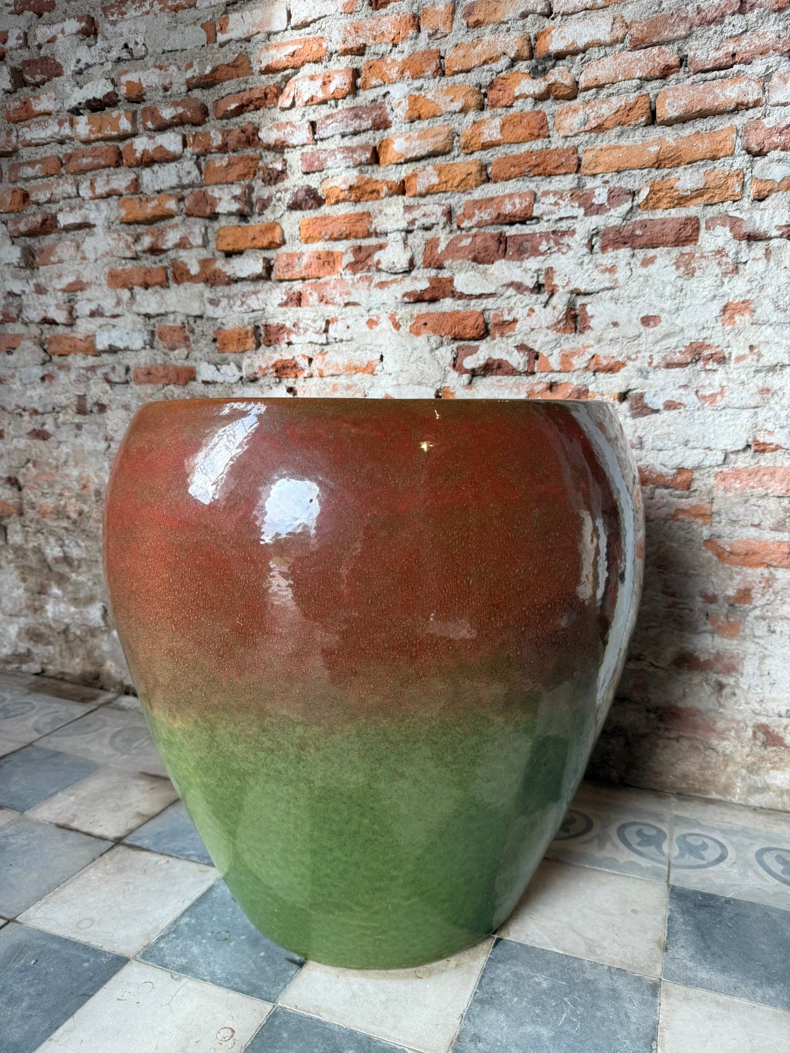 Su superficie esmaltada brilla con fuerza, revelando texturas y matices únicos que surgen del proceso artesanal.